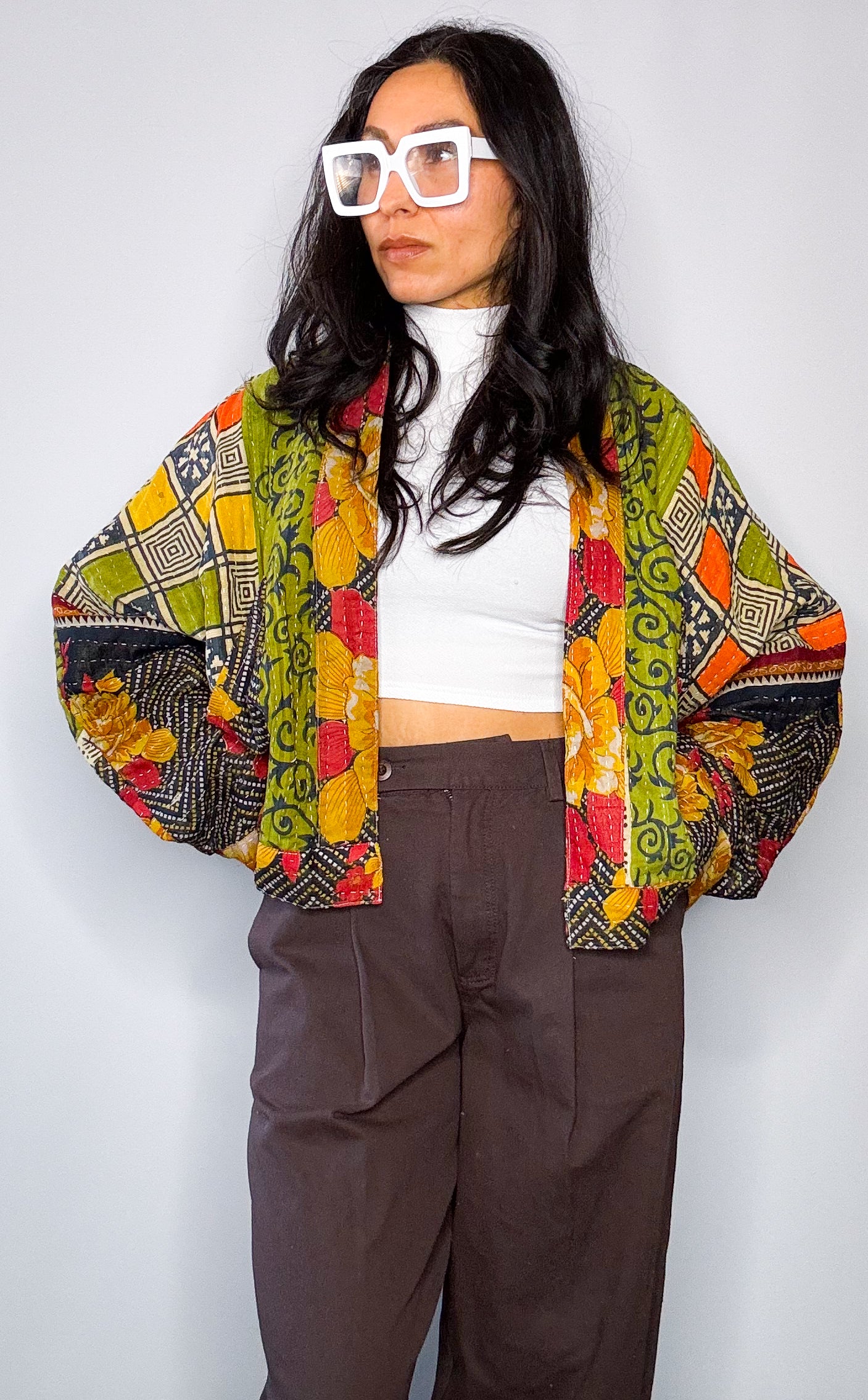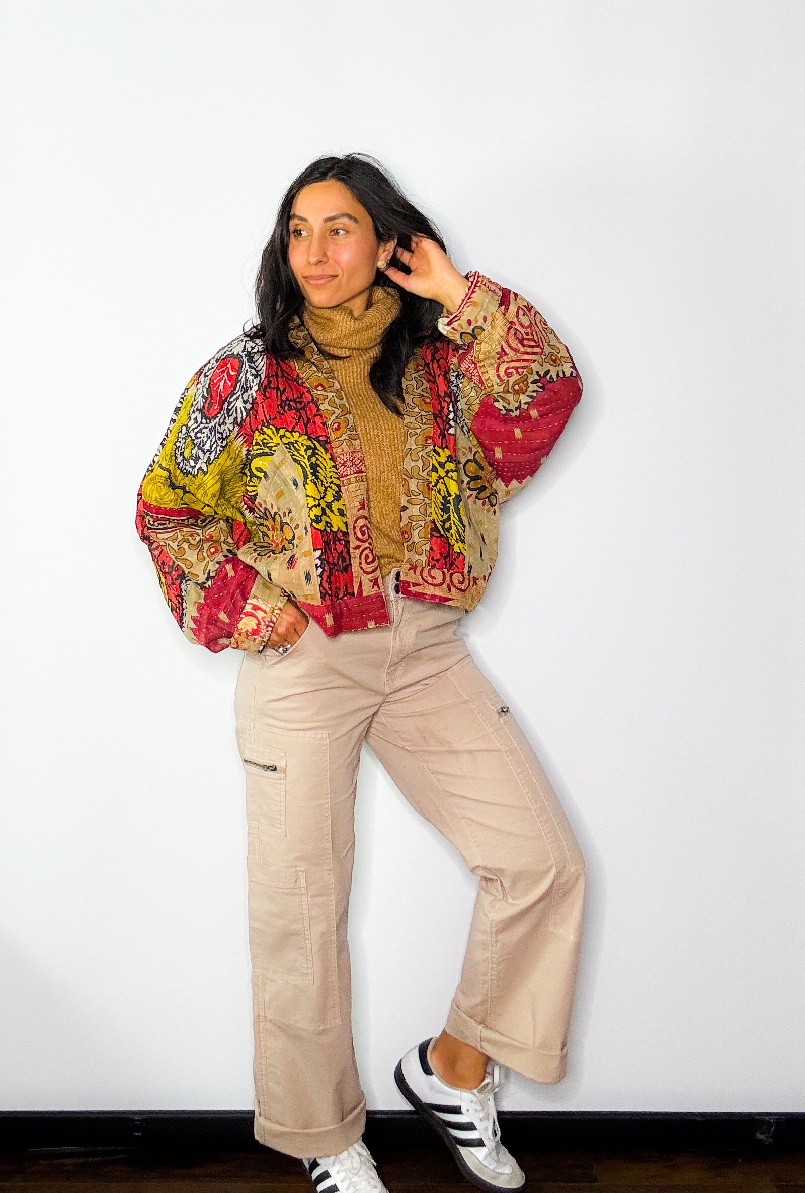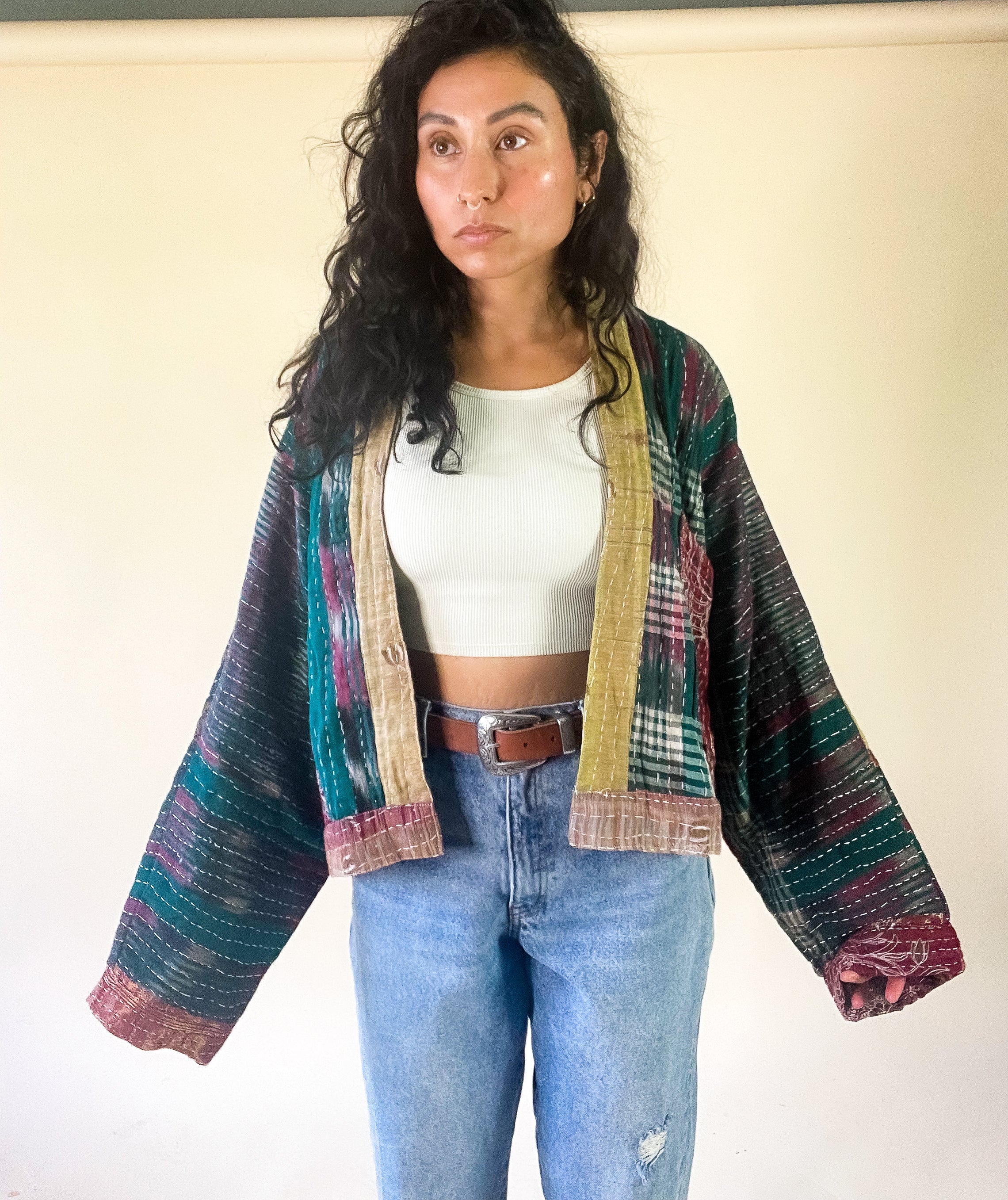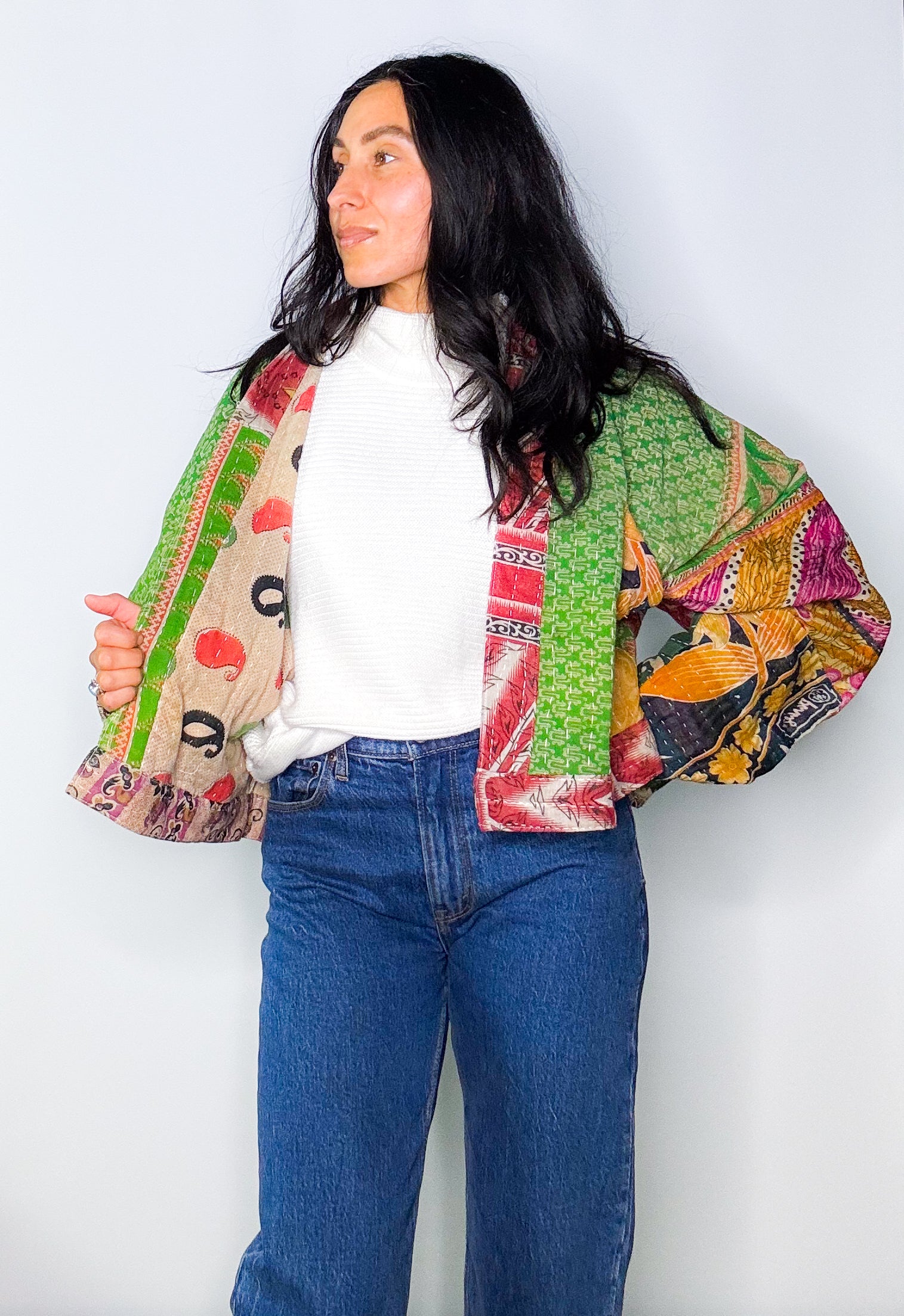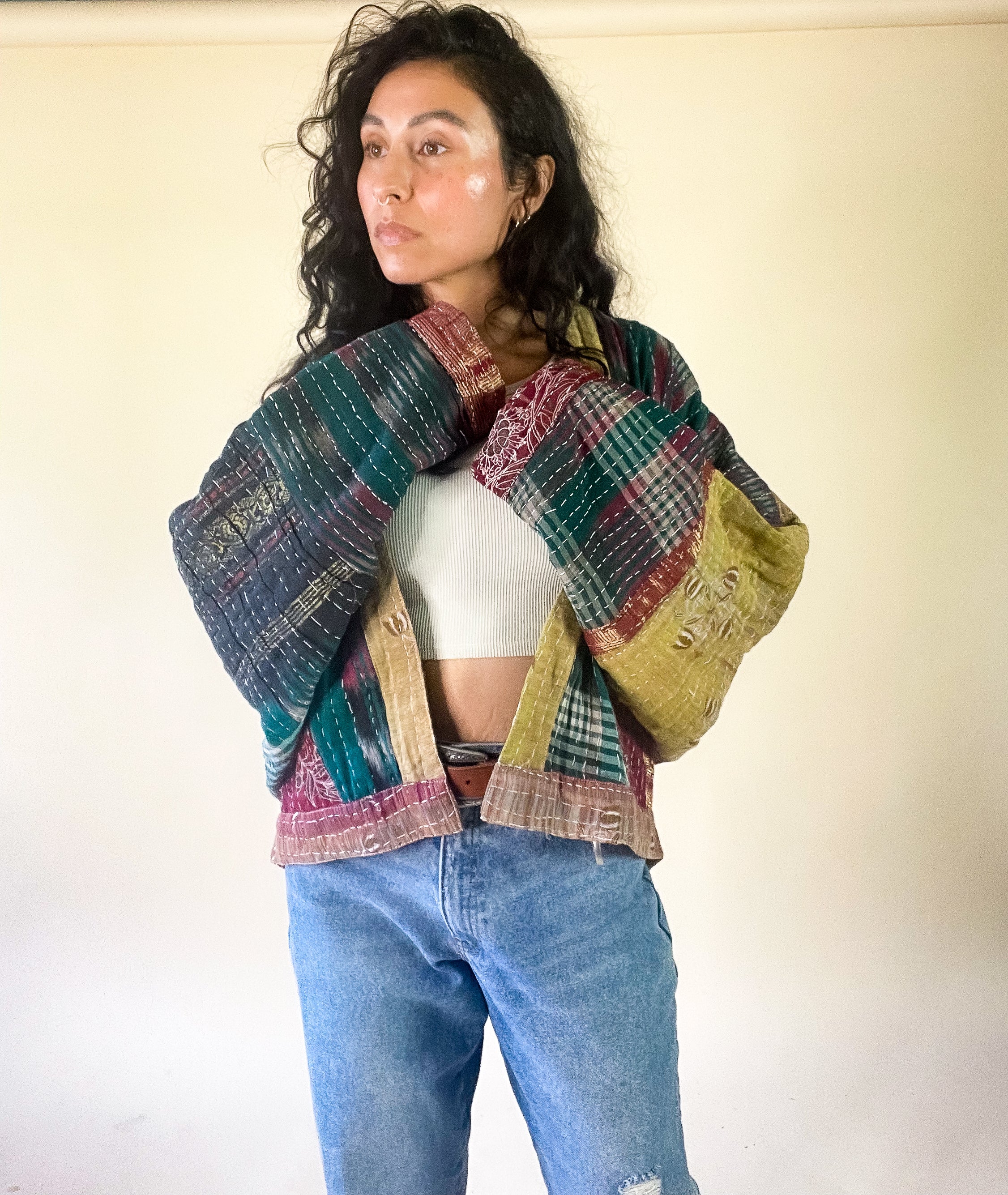 Ophelia | Raglan Sleeve Cropped Upcycled Indian Quilt Jacket