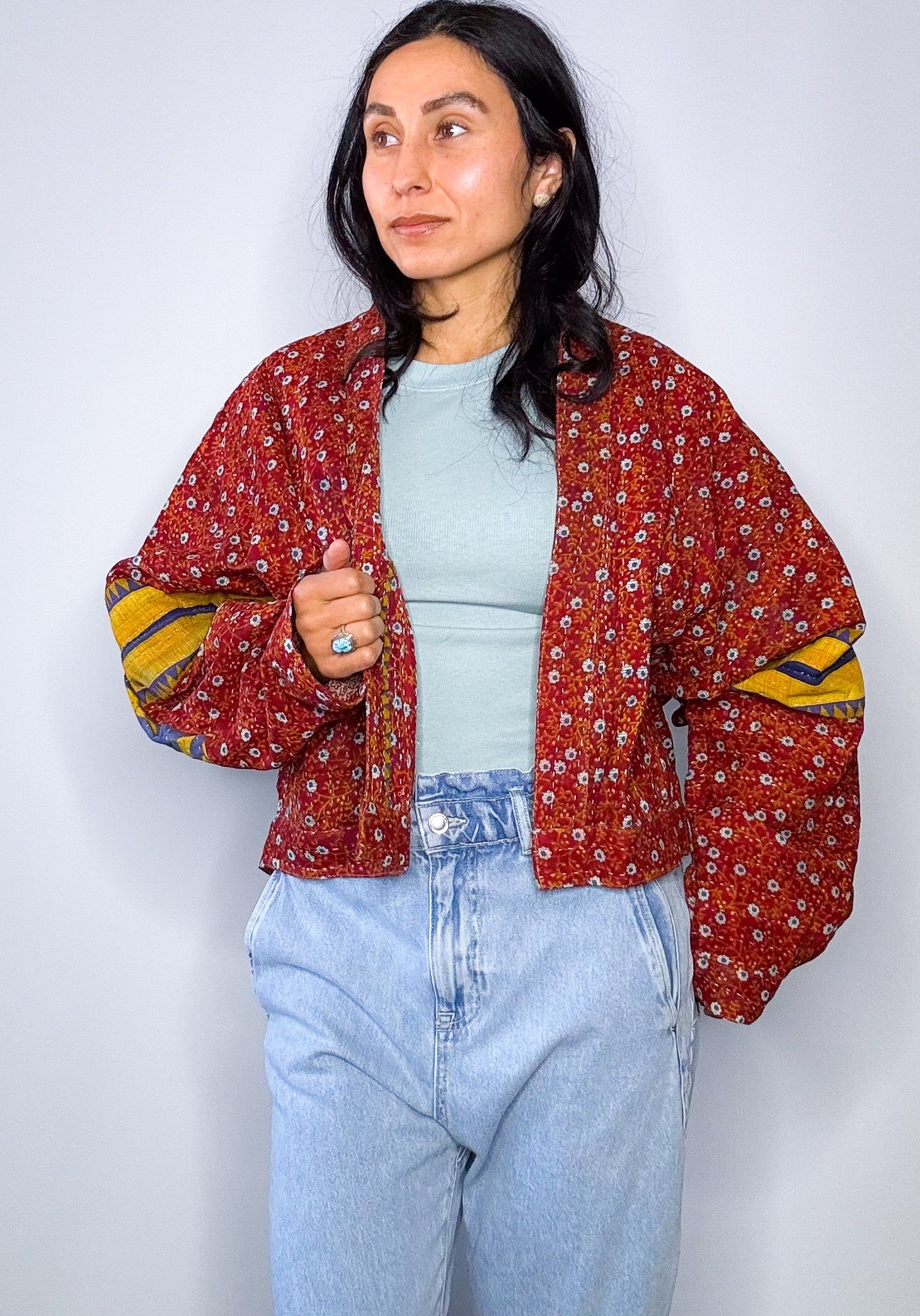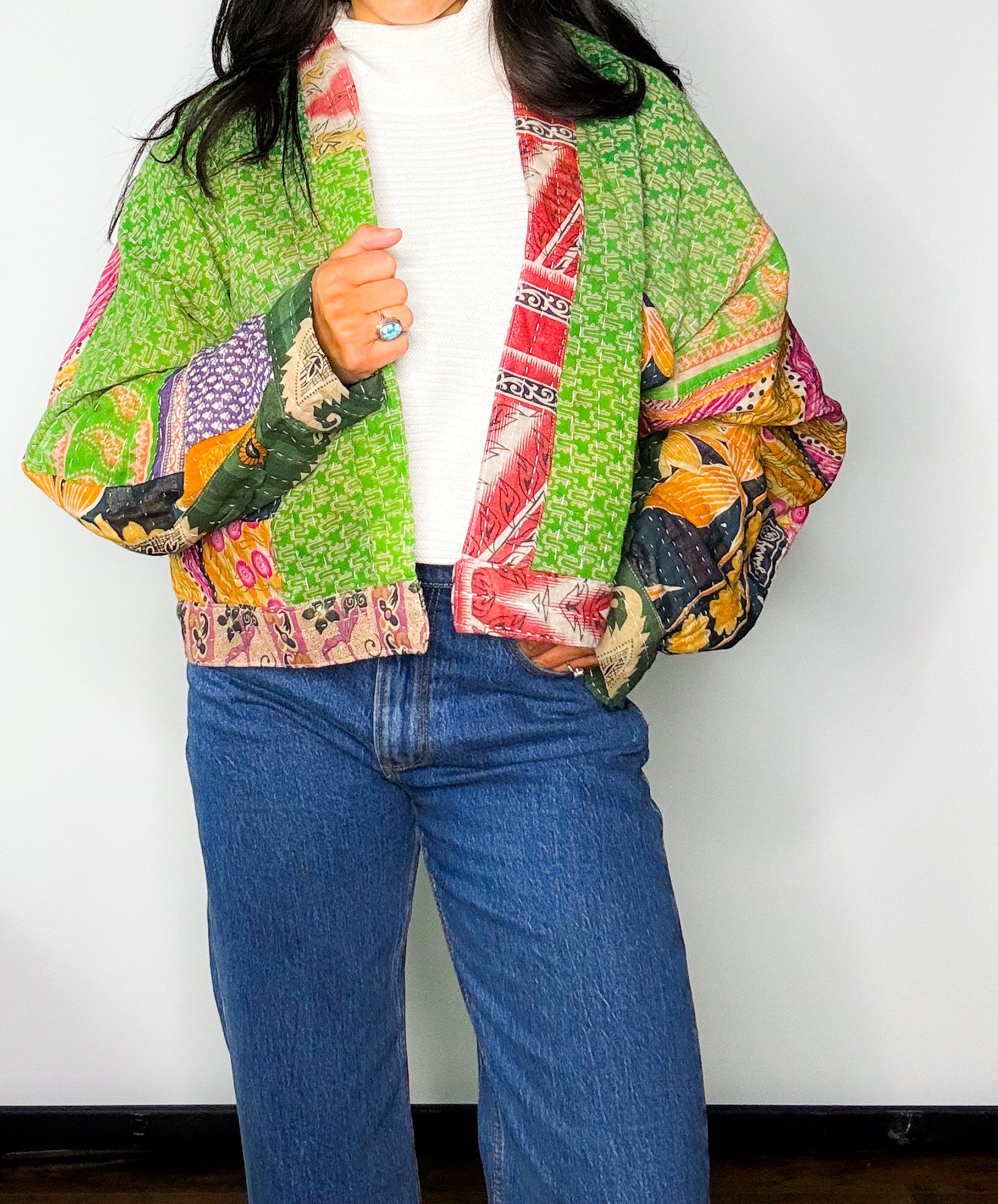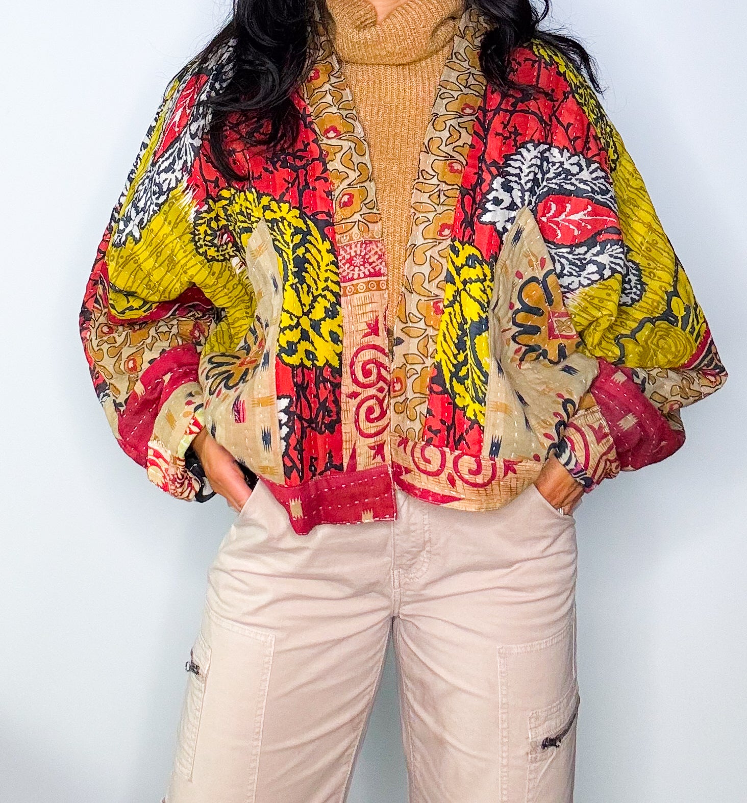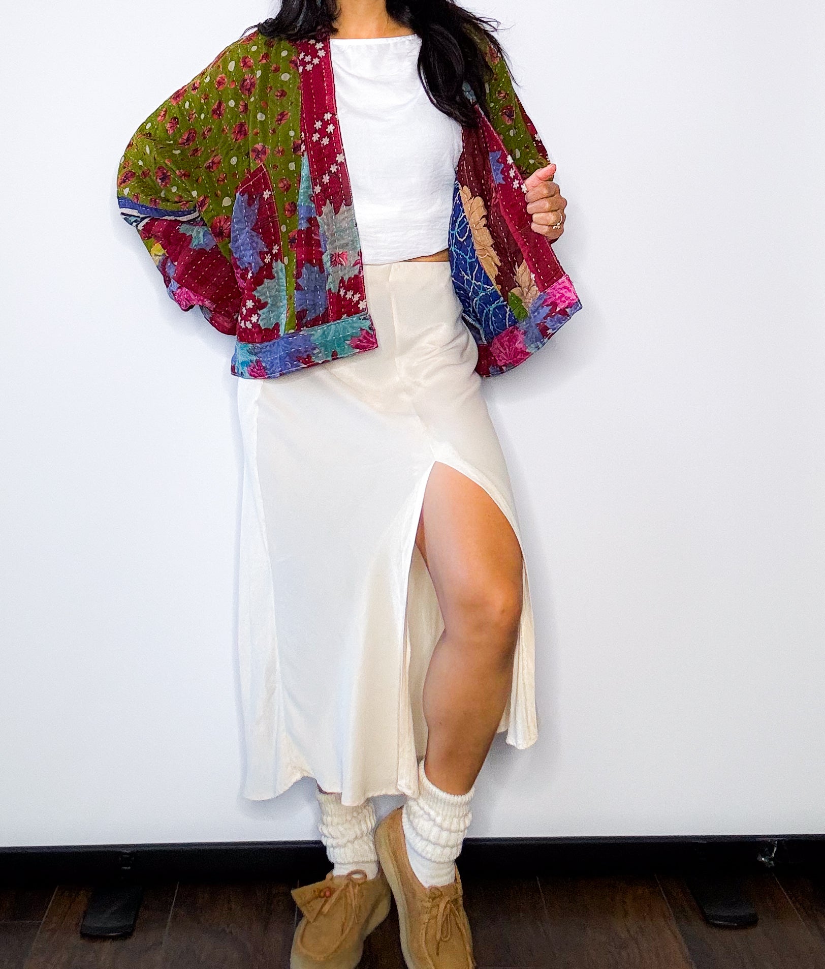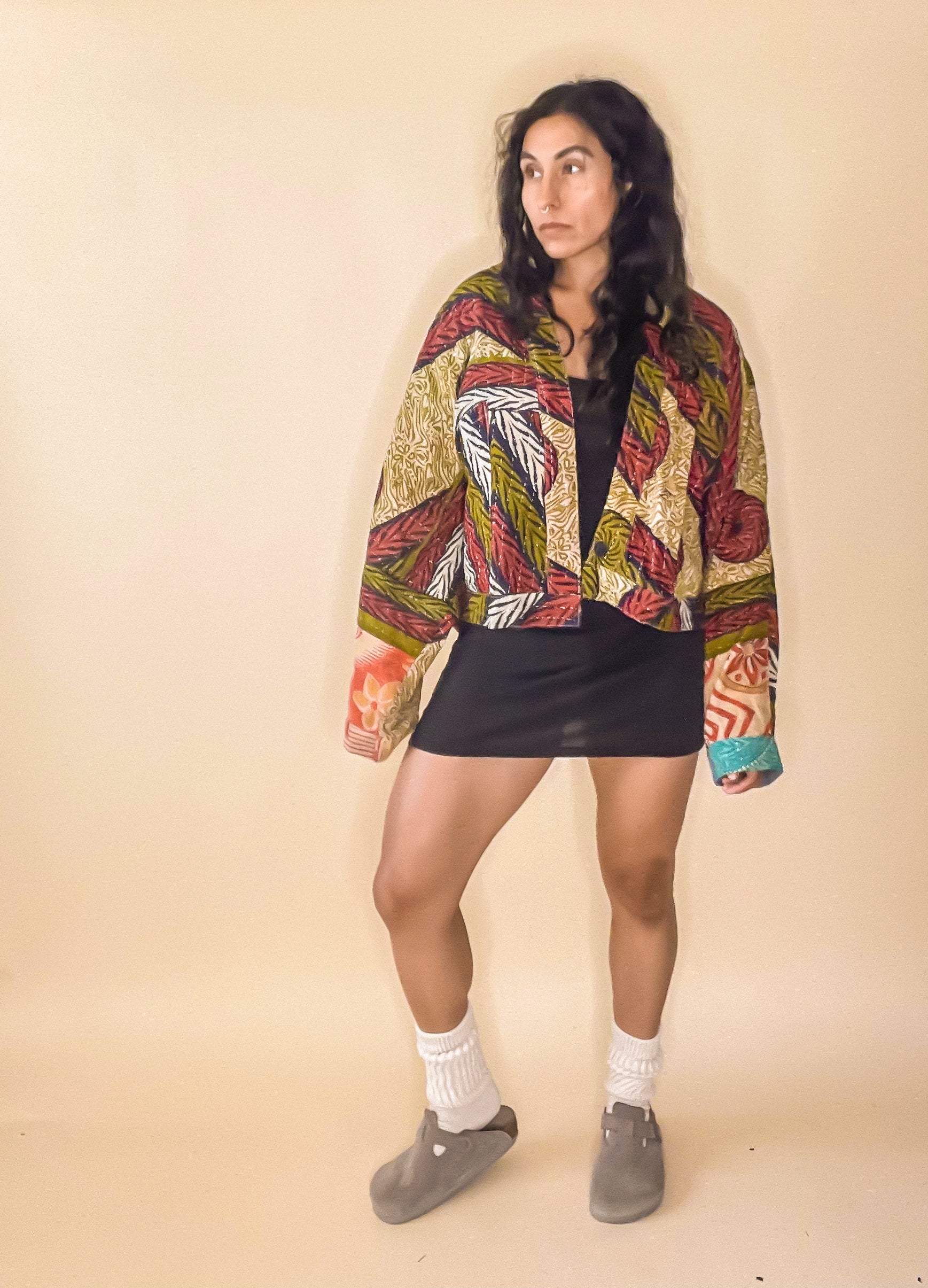 Ophelia | Raglan Sleeve Cropped Upcycled Indian Quilt Jacket