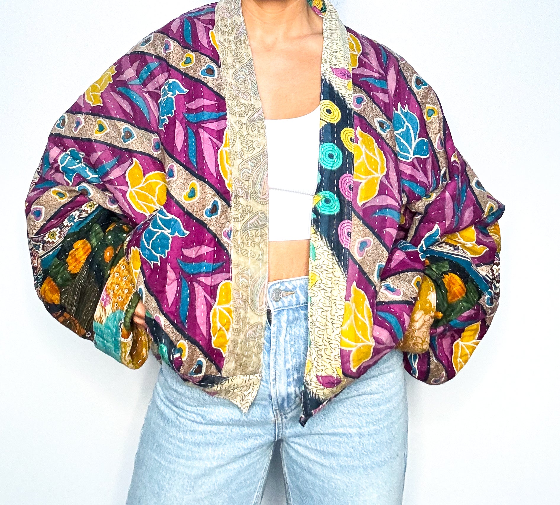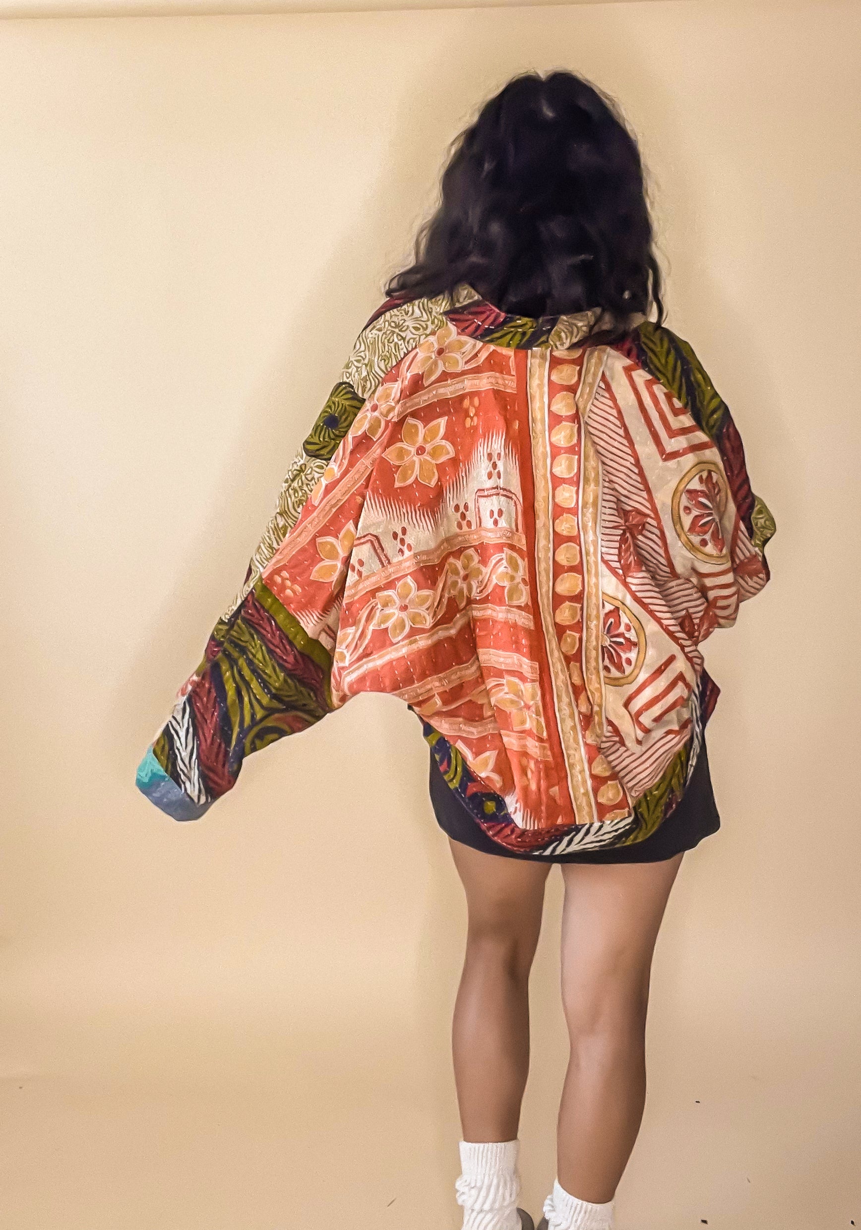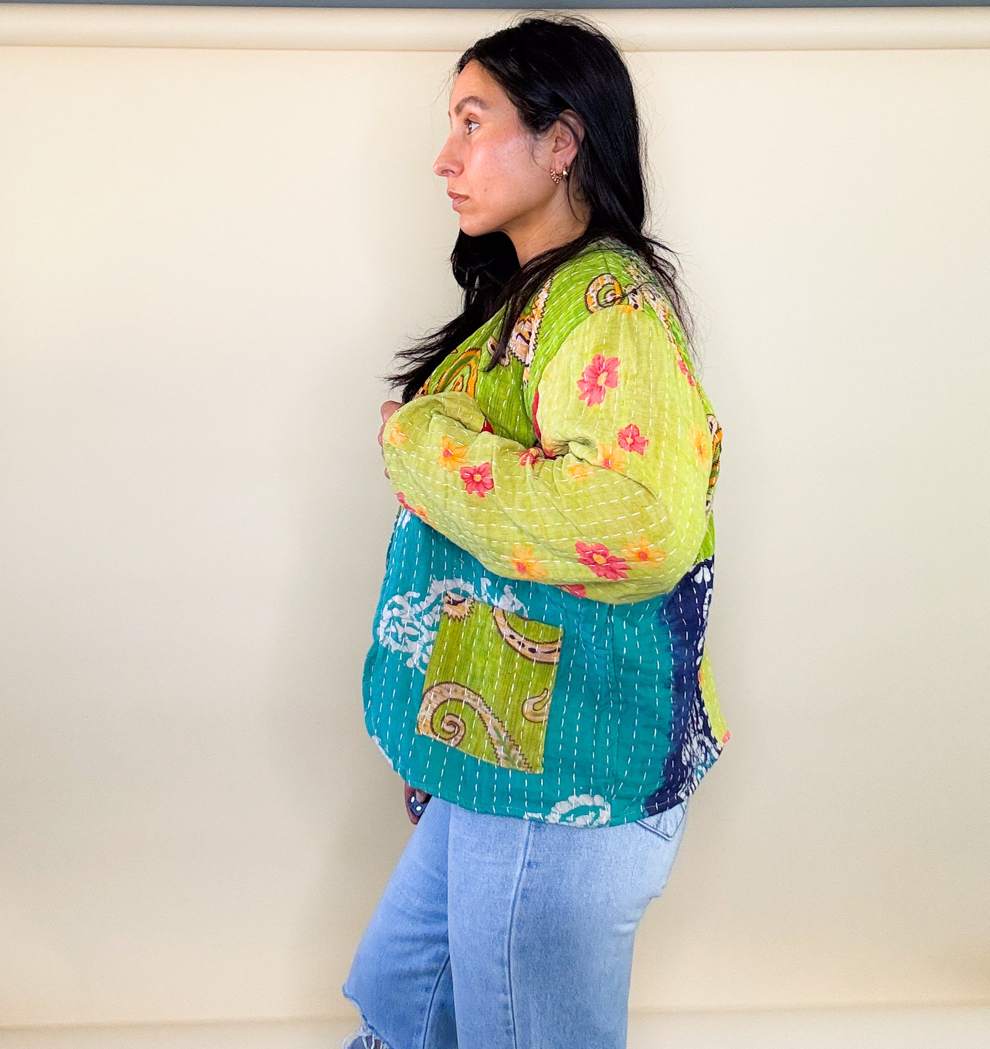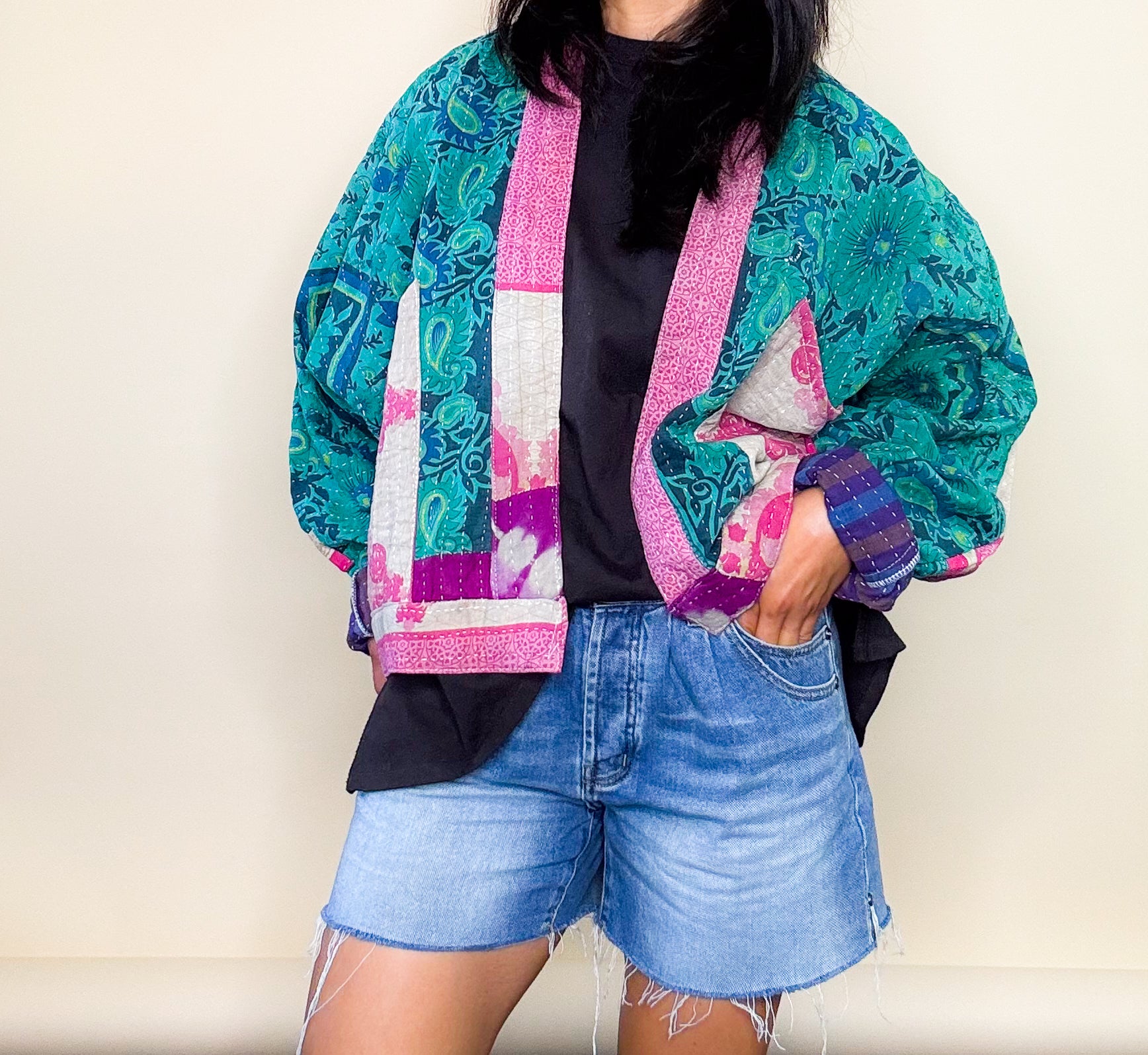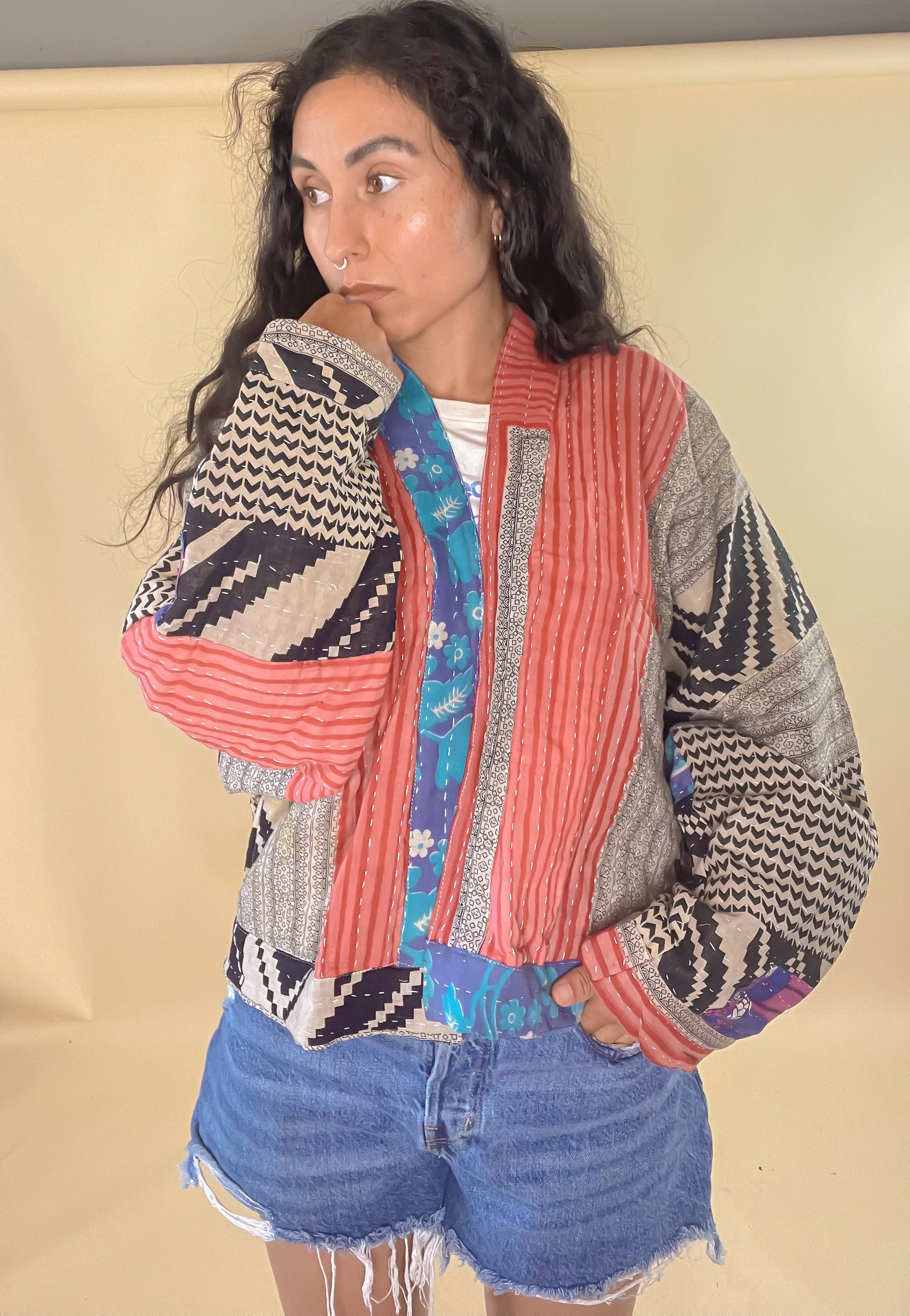 Ophelia | Raglan Sleeve Cropped Upcycled Indian Quilt Jacket