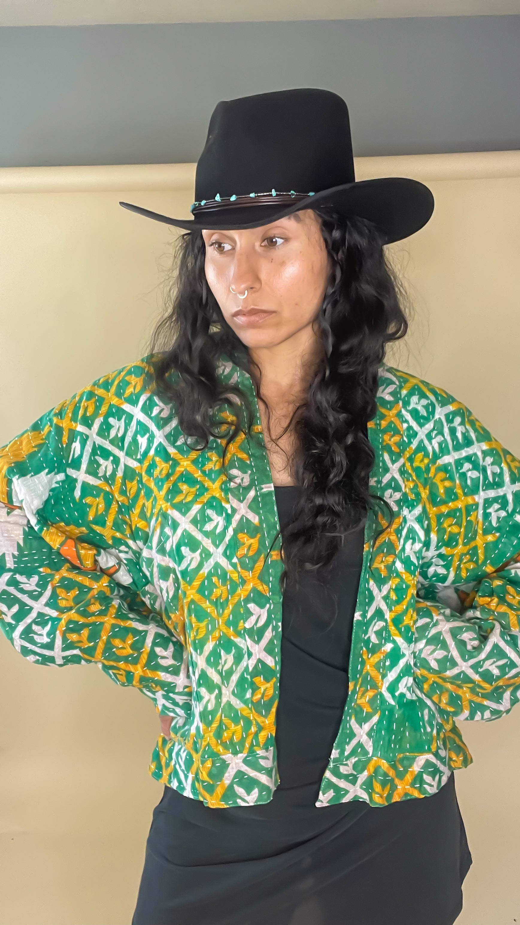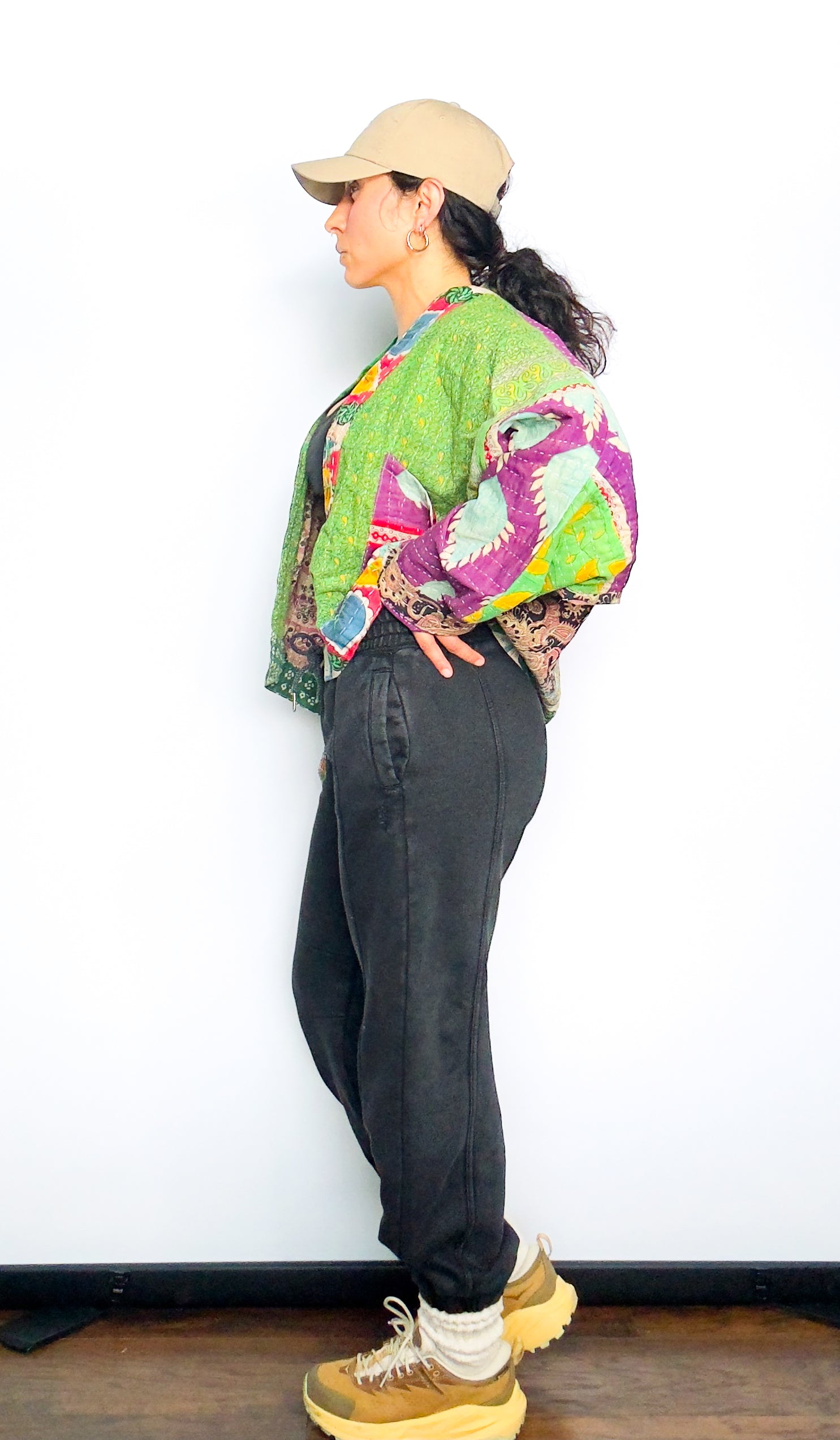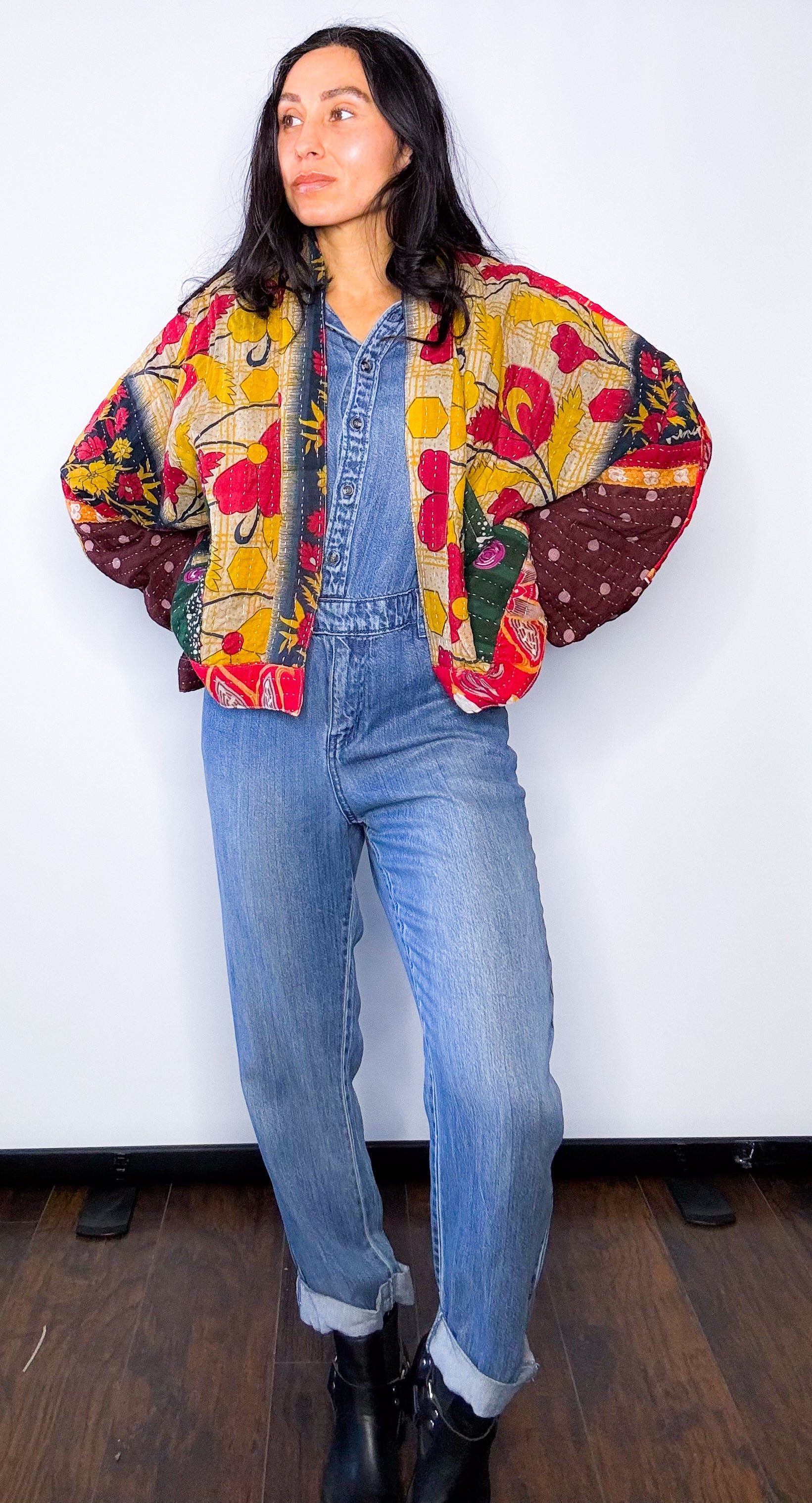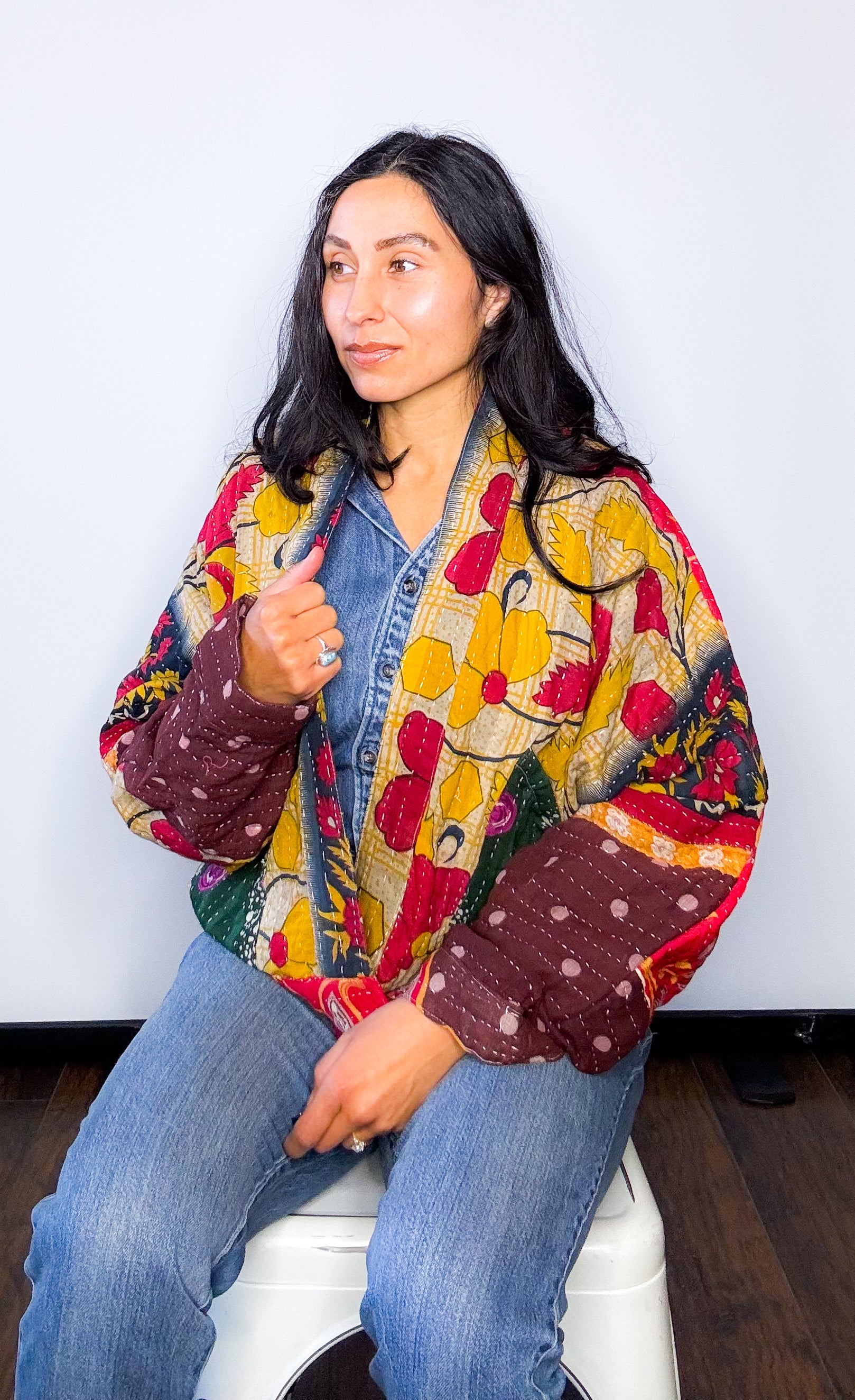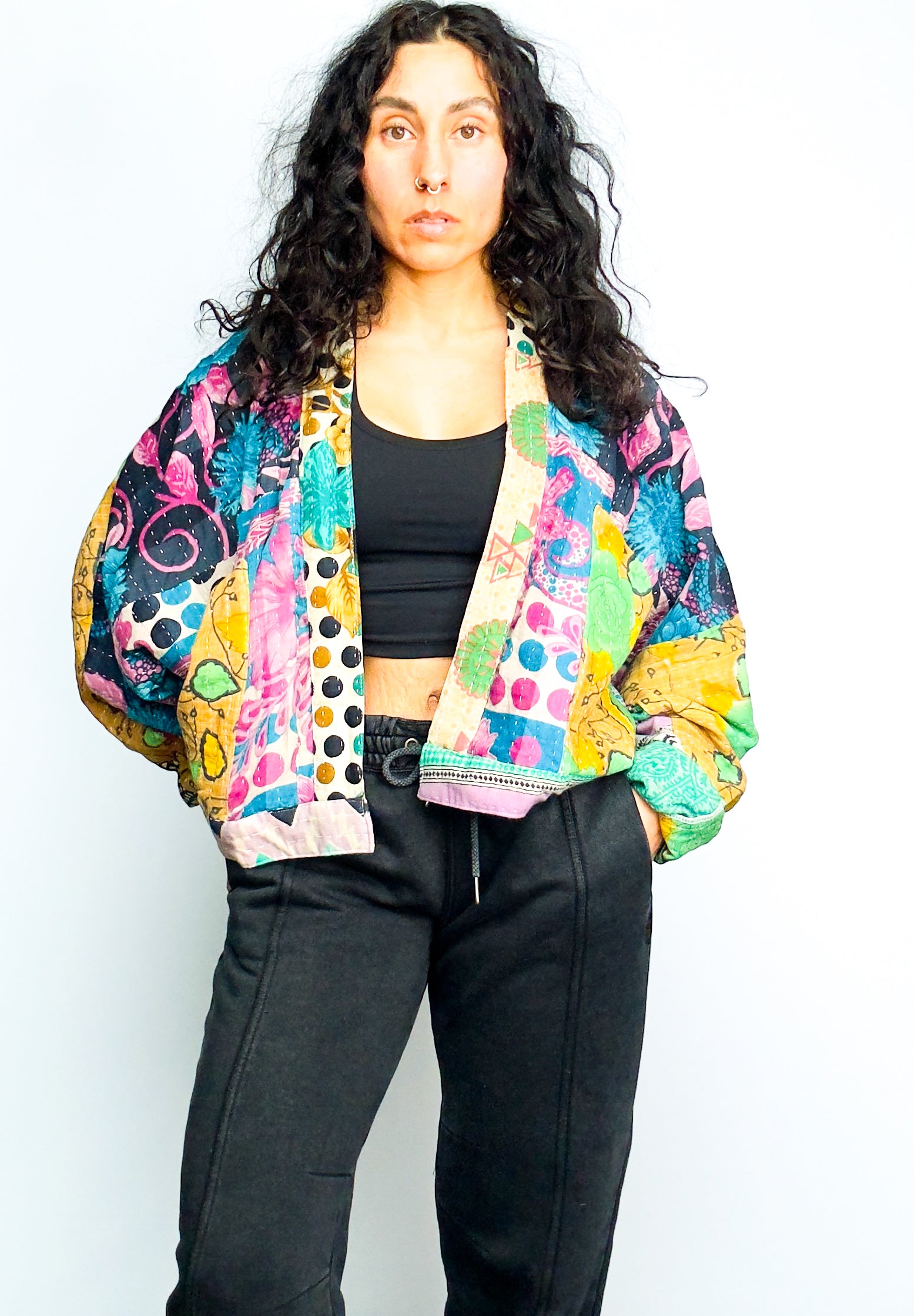 Ophelia | Raglan Sleeve Cropped Upcycled Indian Quilt Jacket