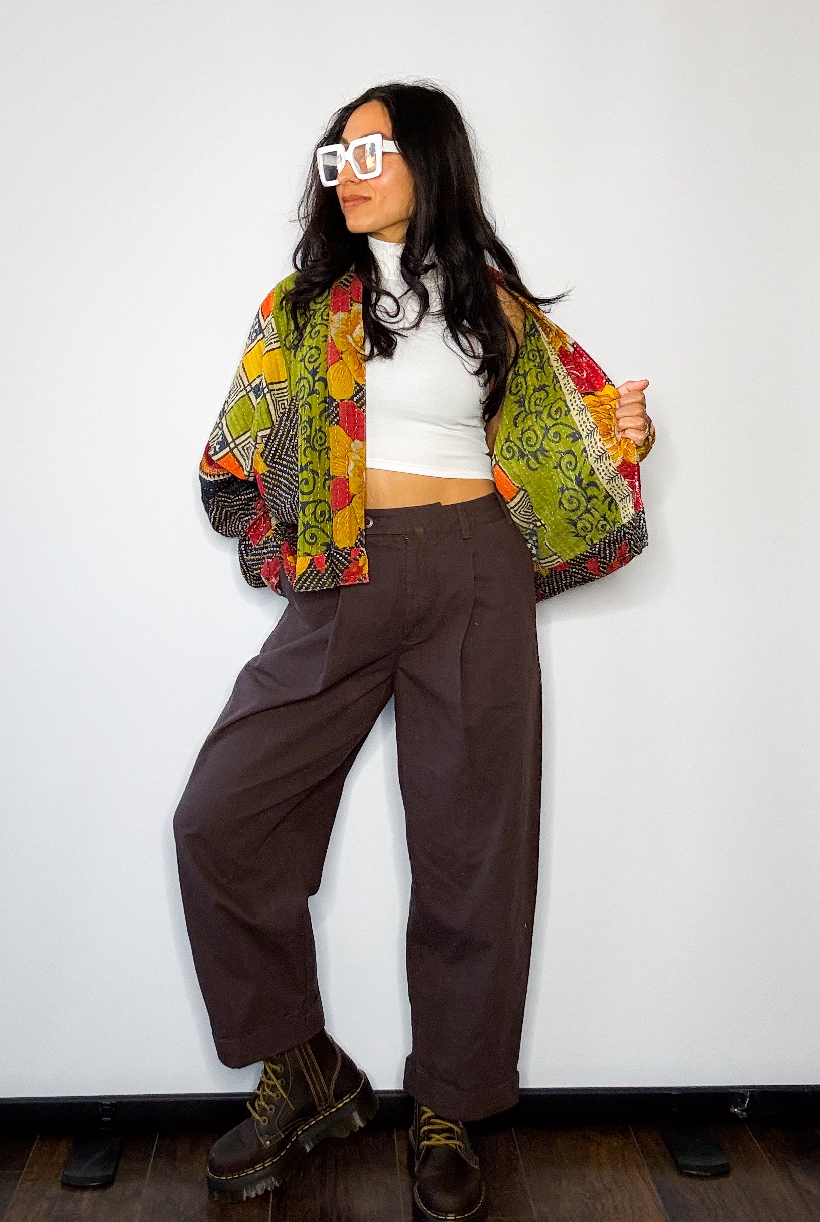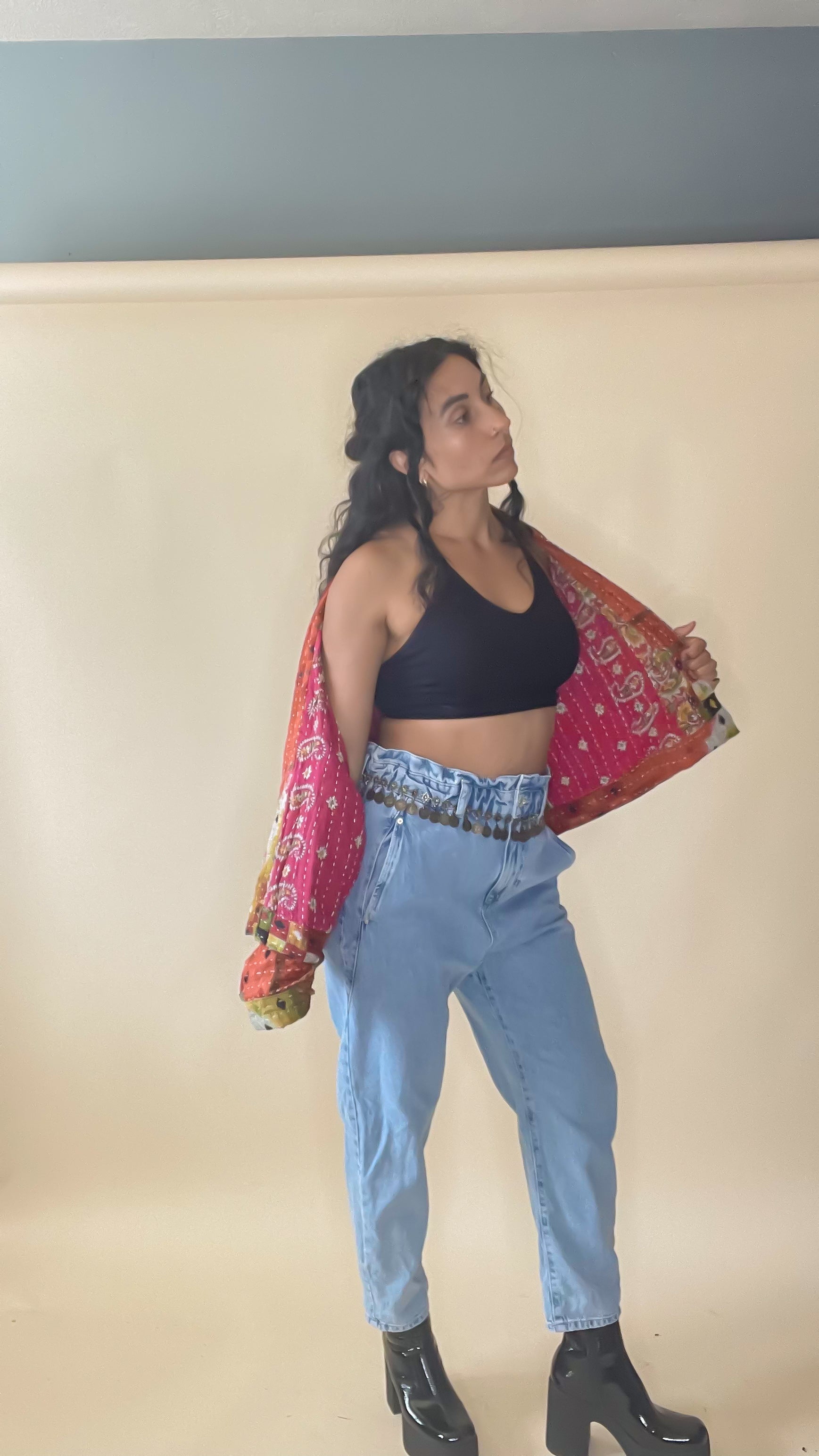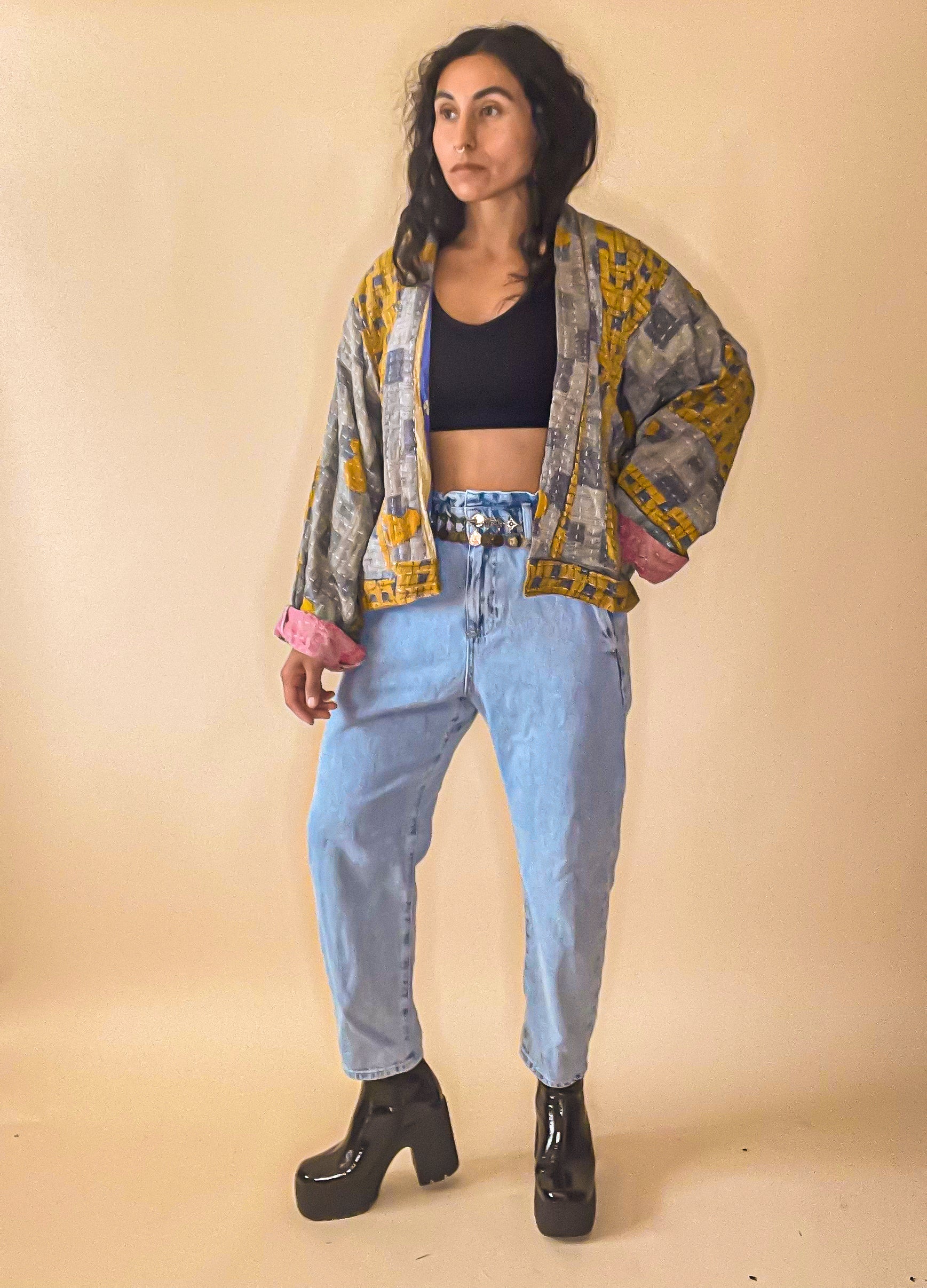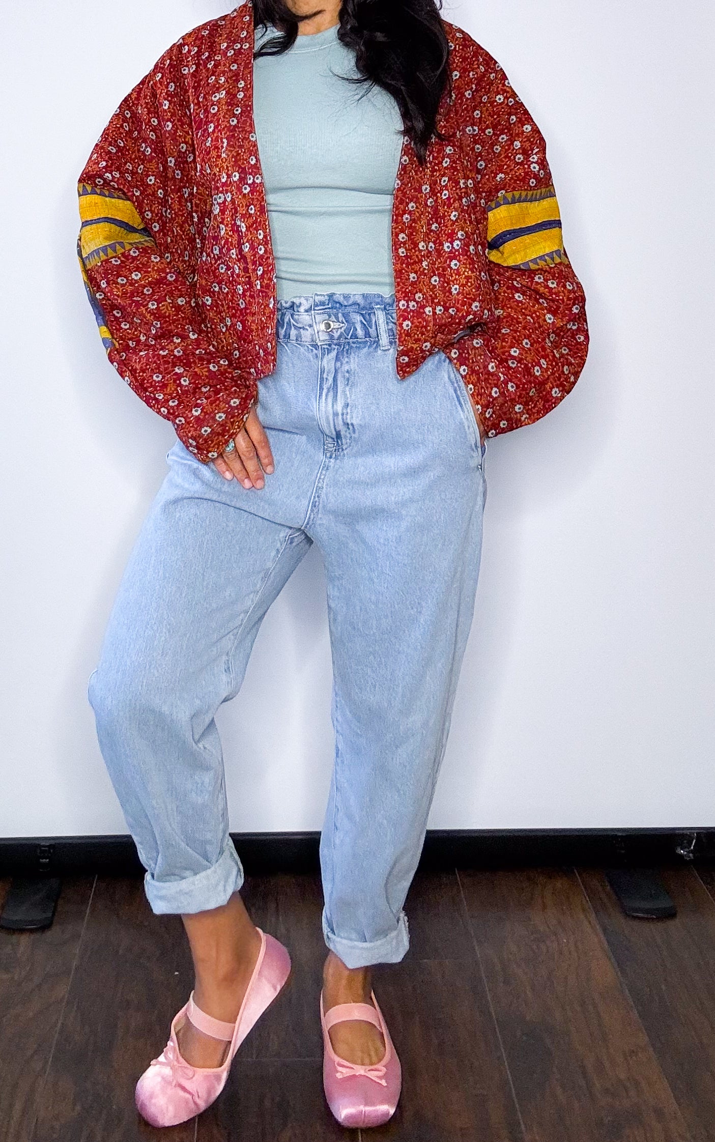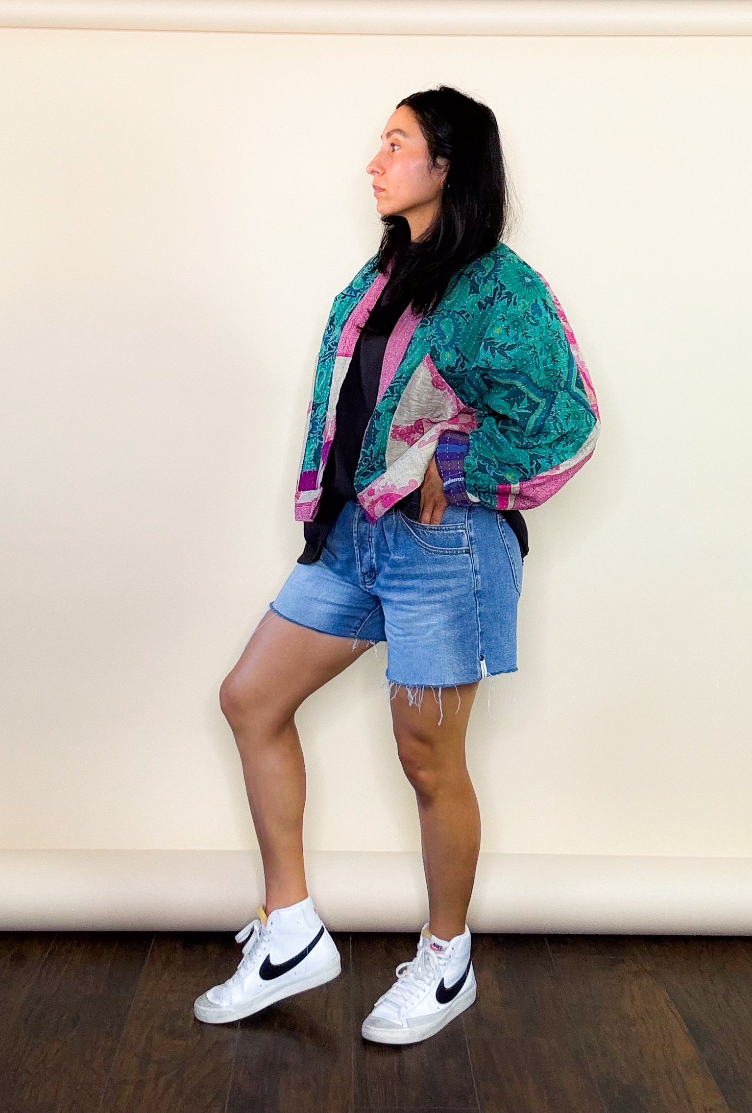 Ophelia | Raglan Sleeve Cropped Upcycled Indian Quilt Jacket