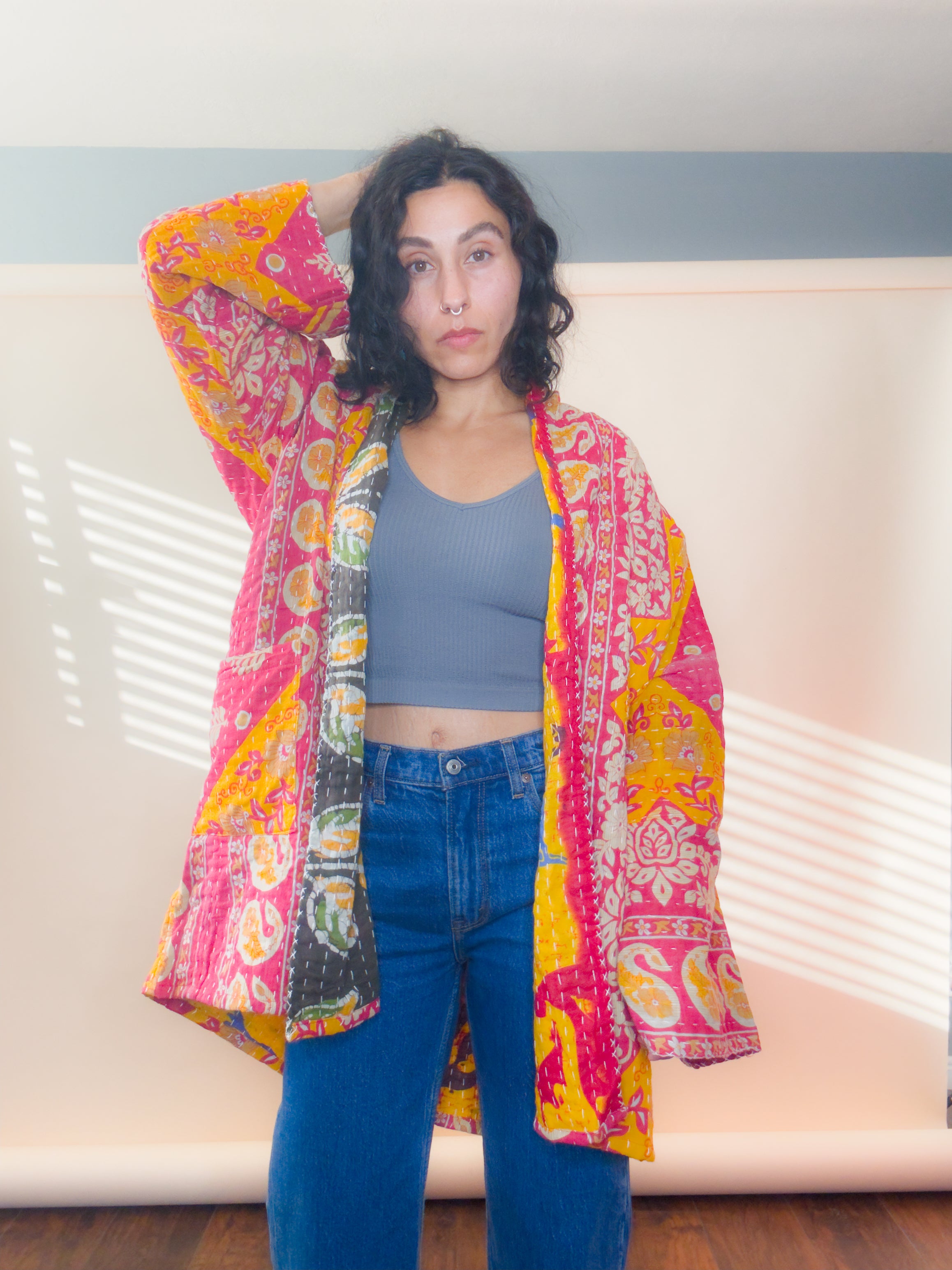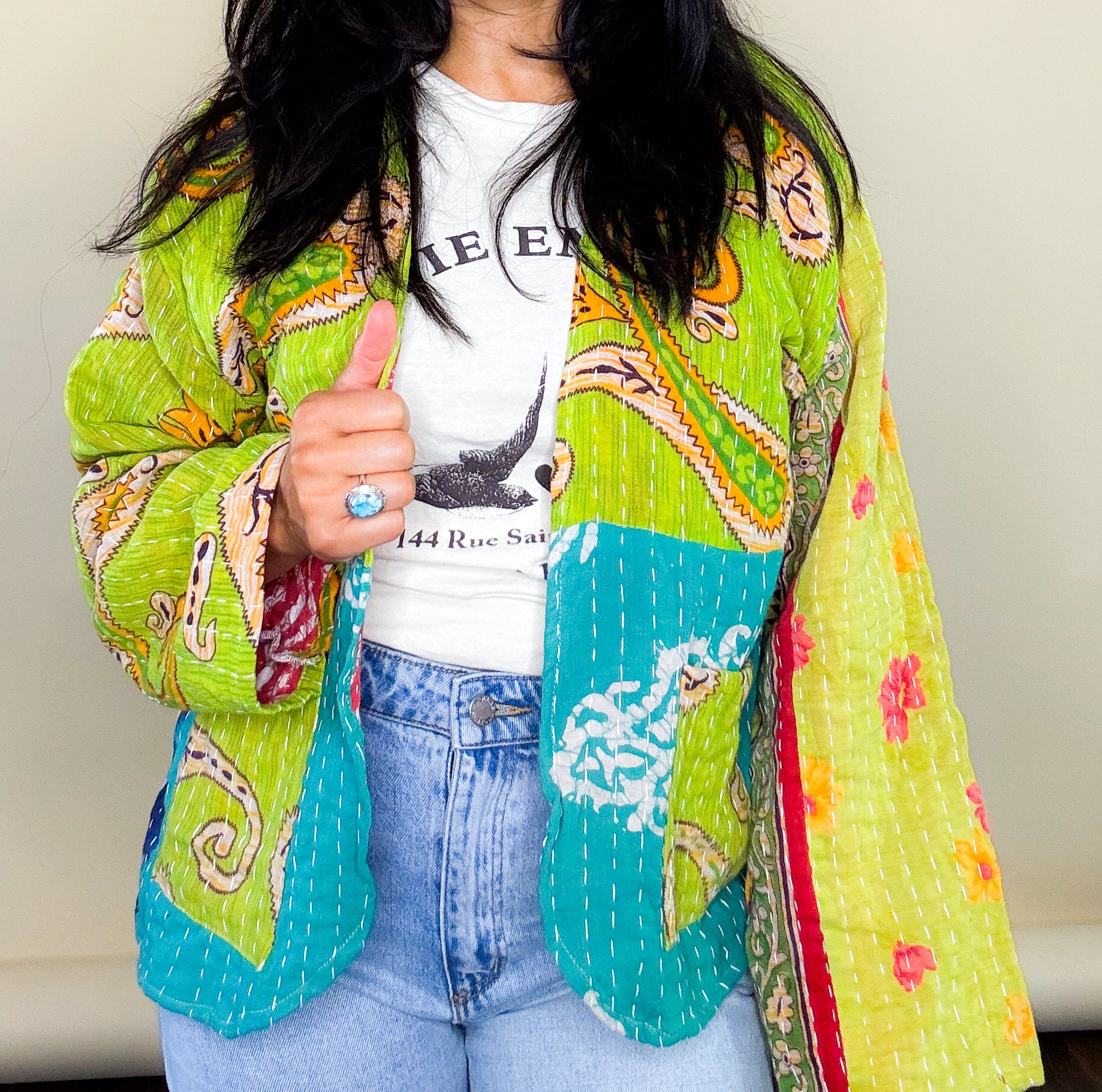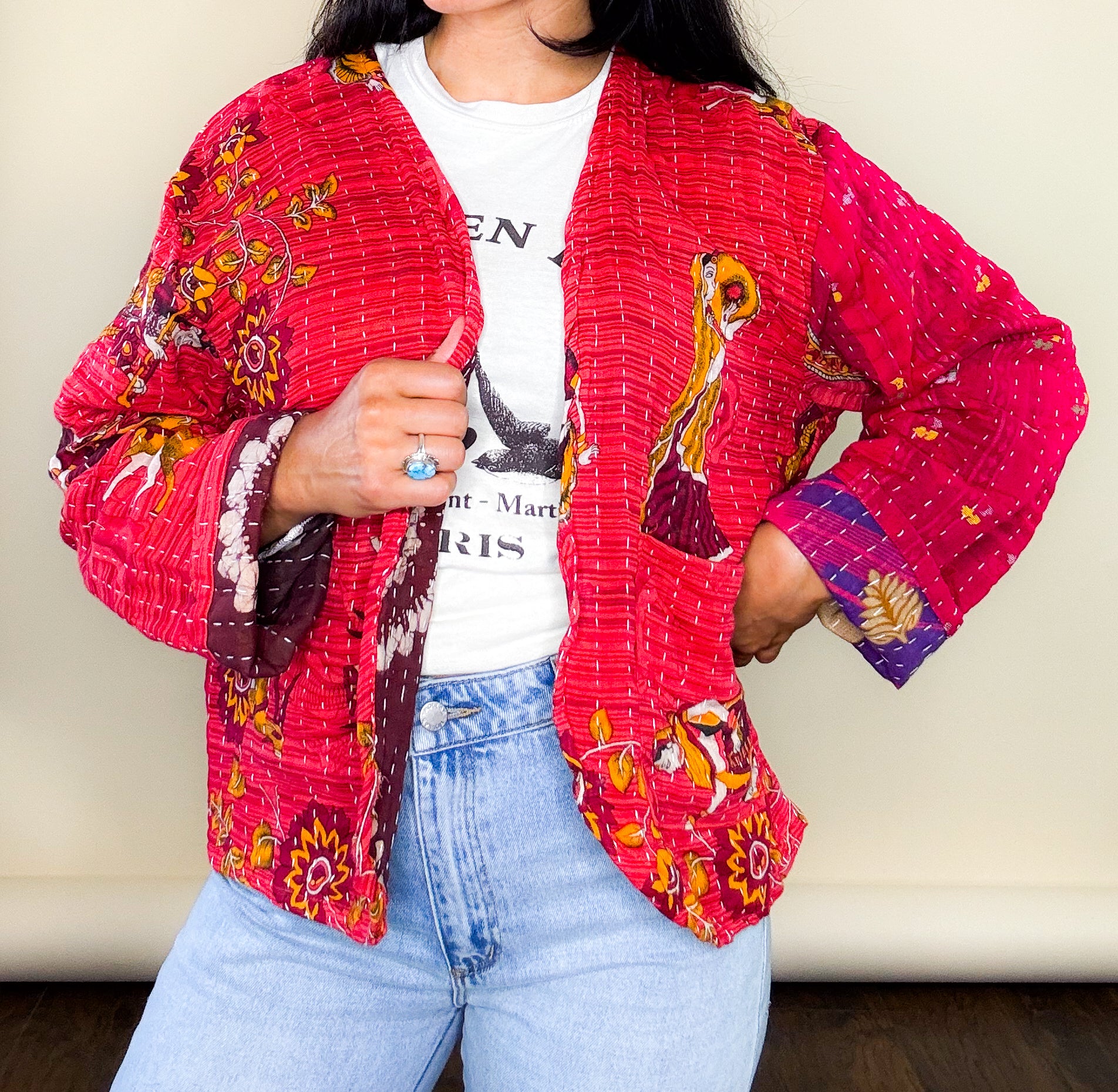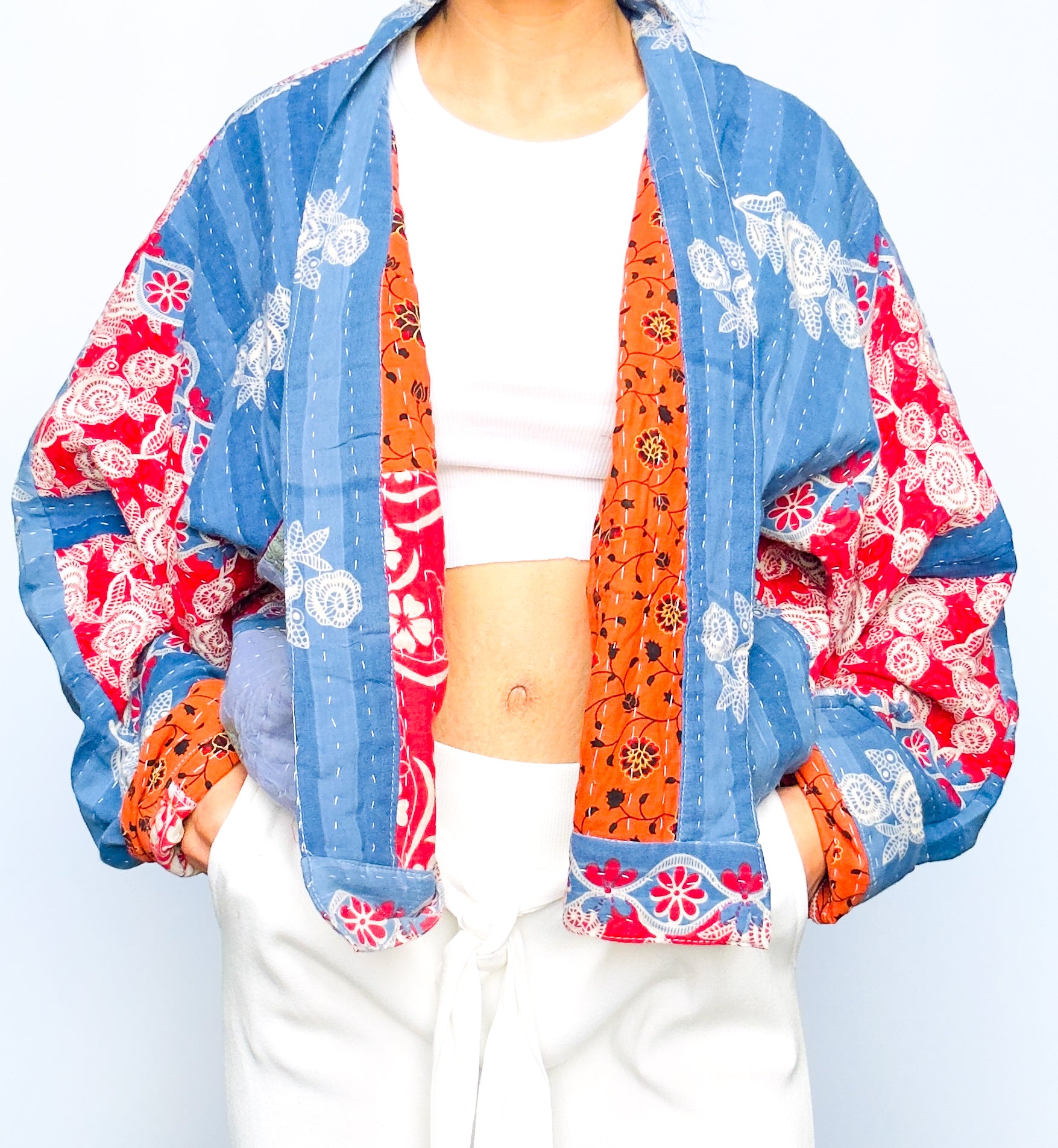 The Chloe| Raglan Sleeve Reversible Kantha Jacket