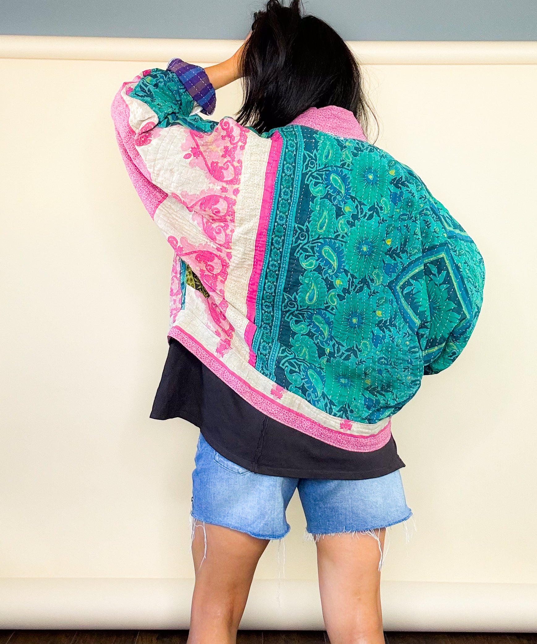 Feelin Playful Raglan Sleeve Reversible Kantha Jacket