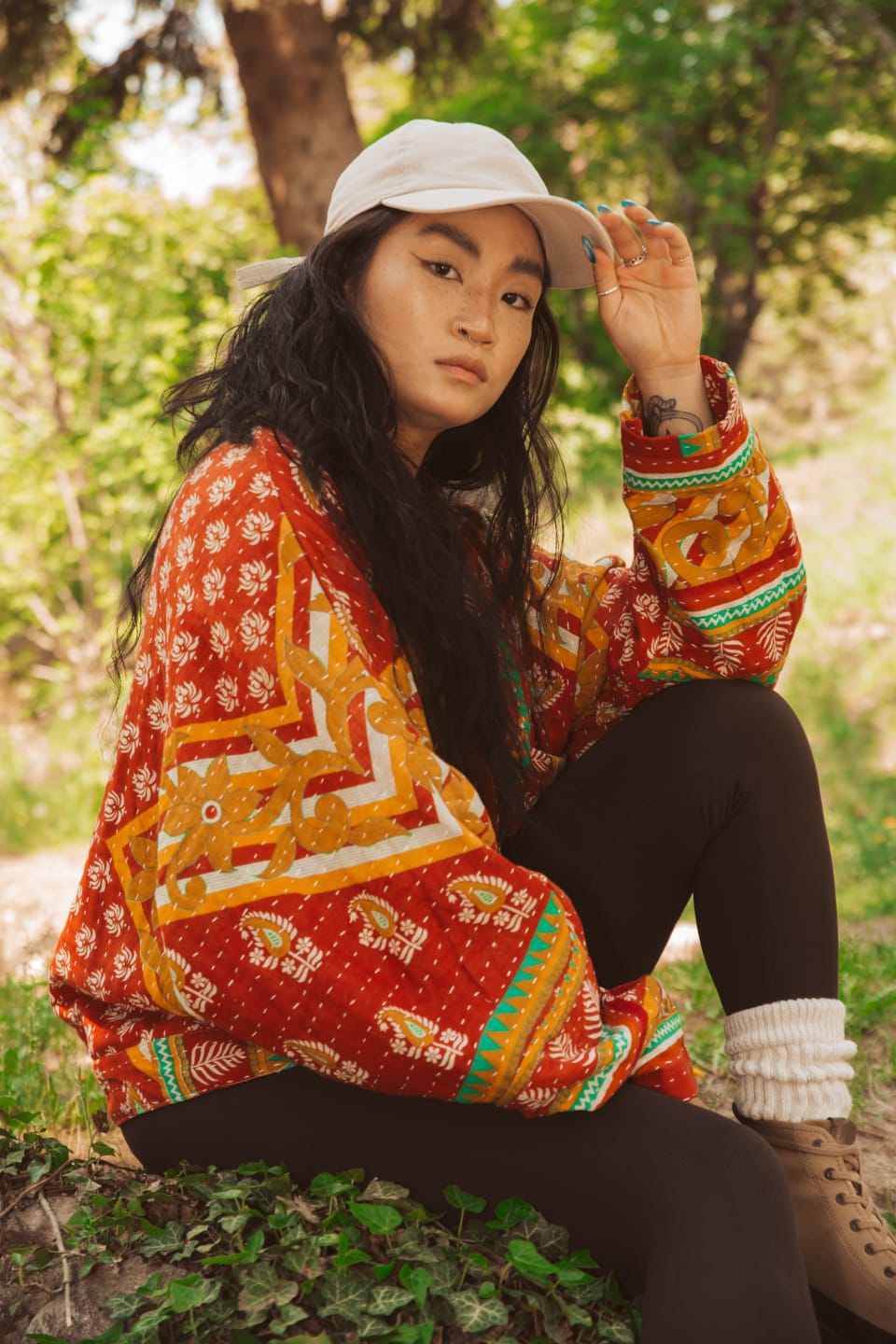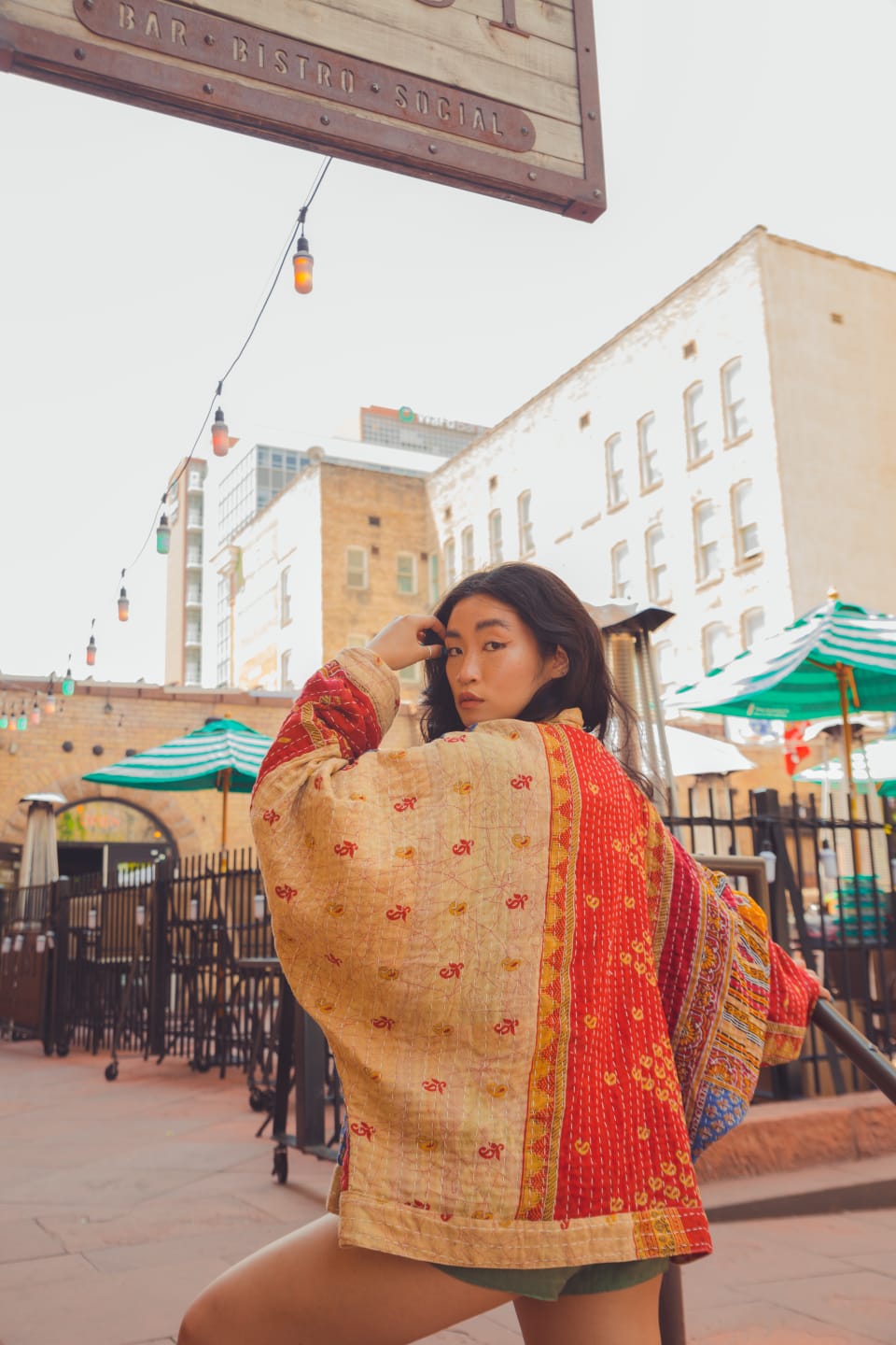 Every Kantha jacket we create is a one-of-a-kind piece, carefully handcrafted from upcycled vintage quilts. When you wear one, you're not just adding style; you're embracing a piece of history and sustainability