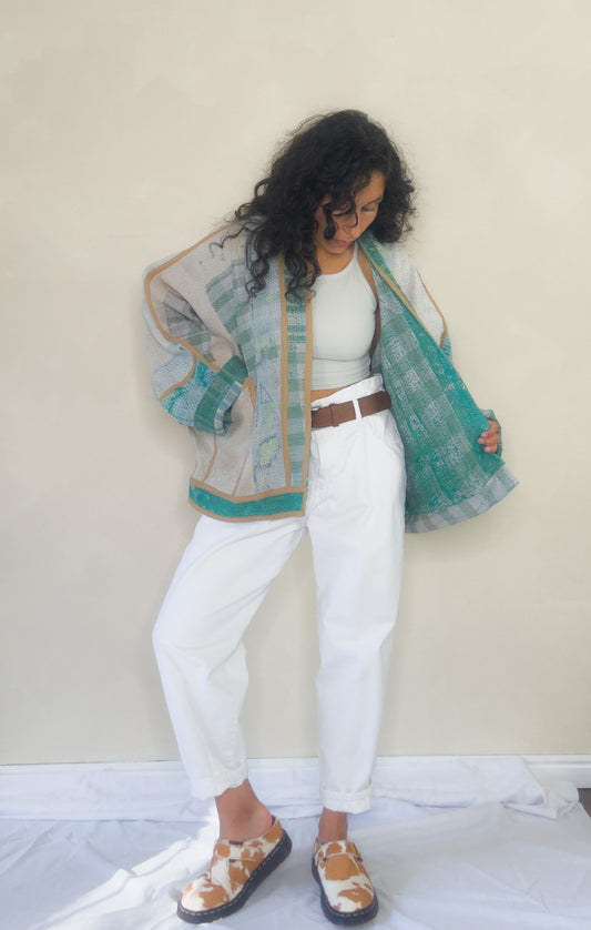 Grunge Chic | Cropped Quilted Kantha Jacket