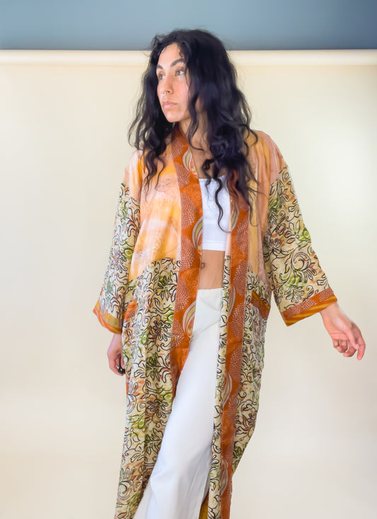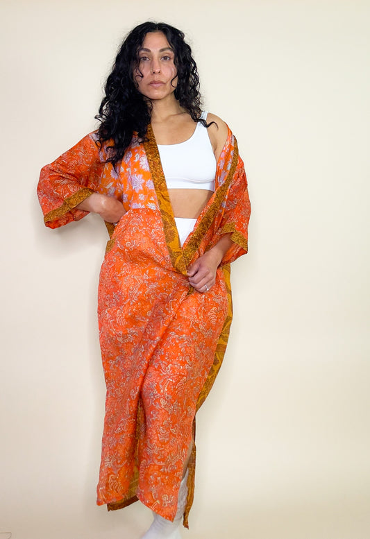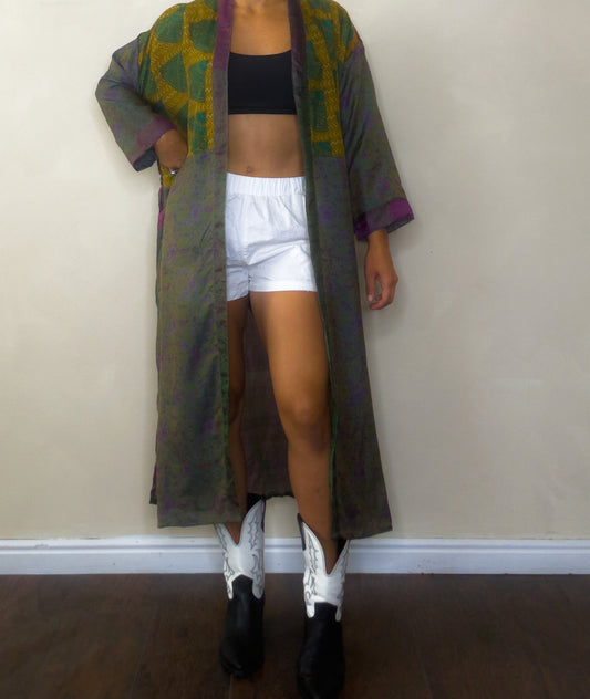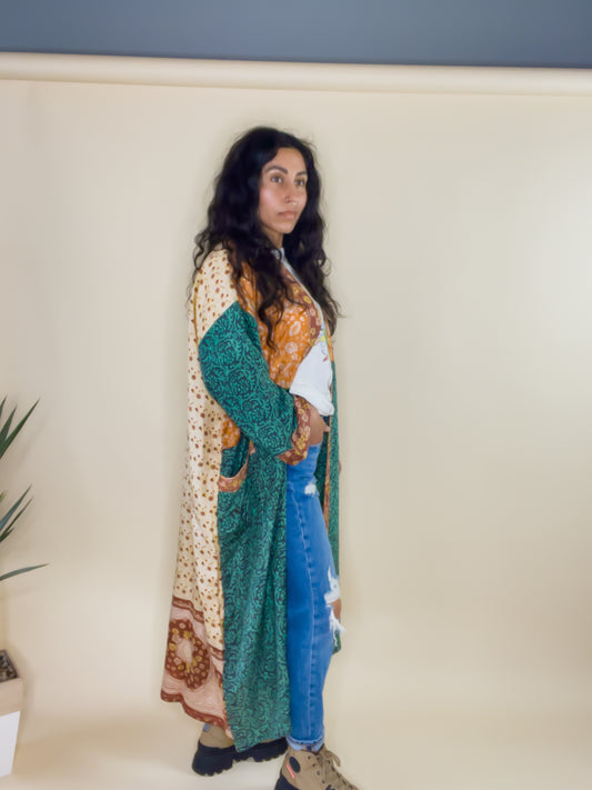 Feelin Zen | Maxi Upcycled Silk Saree Kimono