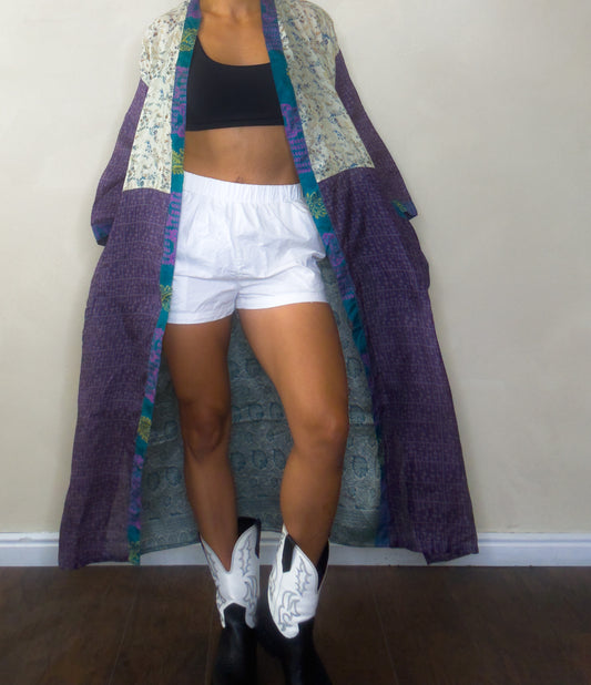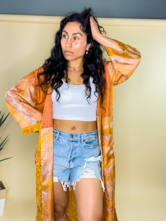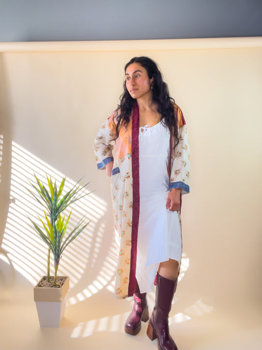 Cali Weather | Maxi Upcycled Silk Saree Kimono